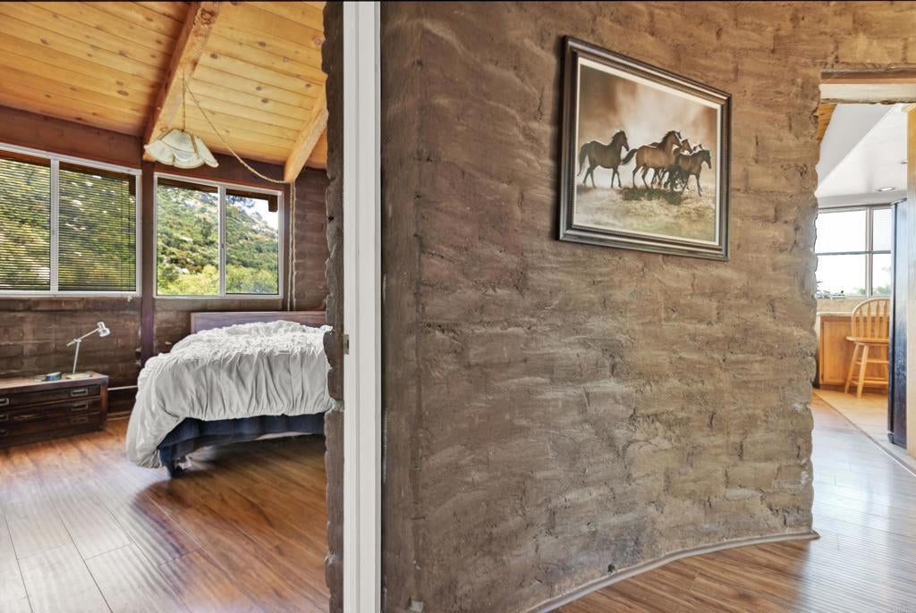 Rare chance to purchase this unique home. Zoned for 2 homes. Located in town but in a very private area with great views. The Jamul Creek travels through the property complete with native trees and views creating a rare oasis. This unique half round adobe, 2 bedrooms, 1 bath (1 bedroom used as office). The kitchen was updated with granite counters, oak cabinets, and lots of windows to enjoy the views. There is an attached laundry room/storage area that with some work could probably be a fully enclosed room. There is a pad on the upper level above the existing house that could easily be a 2nd dwelling area (used to have a trailer there). The old septic and power are still up there. Great location, close to town and schools, but private.