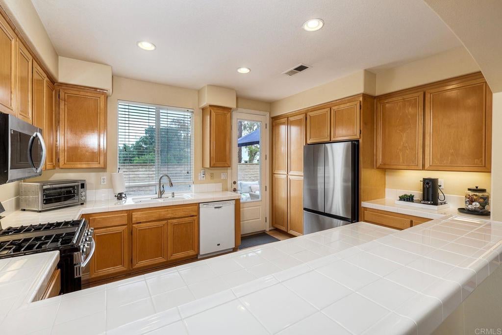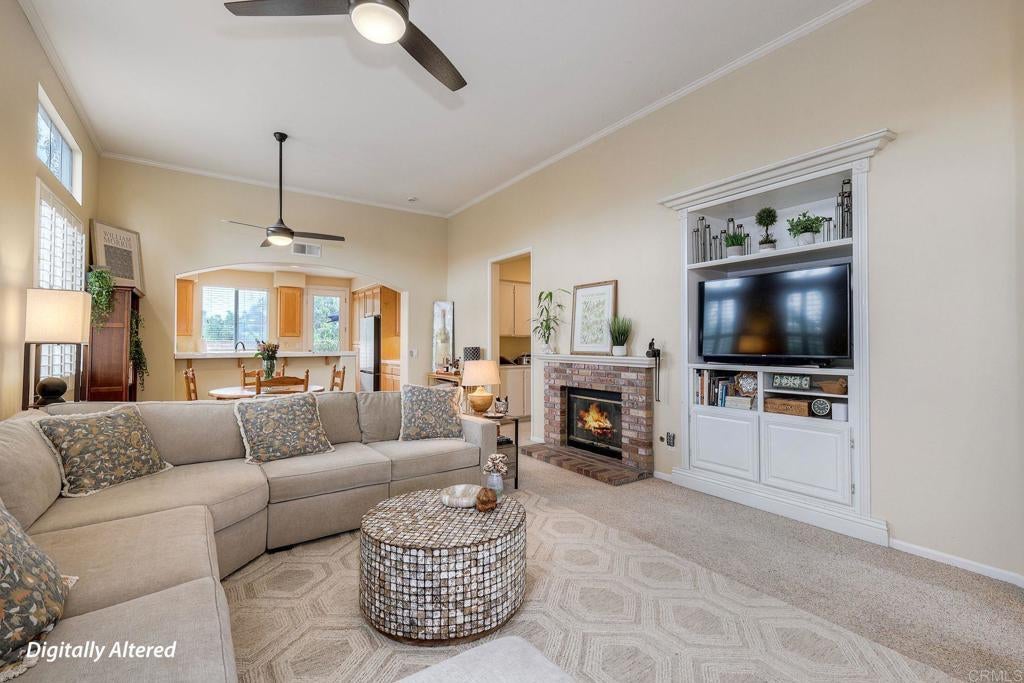 Rare single-story opportunity in Rolling Hills Ranch! Located on a cul-de-sac at 565 San Lucas Pl, this beautifully maintained 3-bedroom, 2-bath home offers approximately 1,469 sq ft of bright and comfortable living space with the added privacy of only one neighboring property on the side. Step inside to a freshly painted interior and an open floor plan filled with natural light. The spacious living room features vaulted ceilings, plantation shutters, built-in shelving, and a cozy brick fireplace, creating an inviting space to relax or entertain. The adjoining kitchen offers stainless steel appliances, ample cabinetry, tile countertops, and a breakfast bar that opens to the dining area and main living spaces—ideal for everyday living and gatherings. The primary suite provides a peaceful retreat with backyard access, a walk-in closet with built-in organizers, and an en-suite bathroom with dual sinks and generous vanity space. Two additional bedrooms offer flexibility for family, guests, or a home office. Enjoy Southern California living in the private backyard featuring a patio and decorative paver seating area—perfect for outdoor dining or relaxing evenings. Additional highlights include central A/C, an attached two-car garage, interior laundry room, and access to the outstanding amenities of Rolling Hills Ranch, including pools, parks, playgrounds, and scenic walking trails. Thurgood Marshall Elementary is conveniently located within walking distance, adding to the home's appeal. Single-story homes in this community rarely become available—don’t miss this opportunity to own in one of Chula Vista’s most desirable neighborhoods.