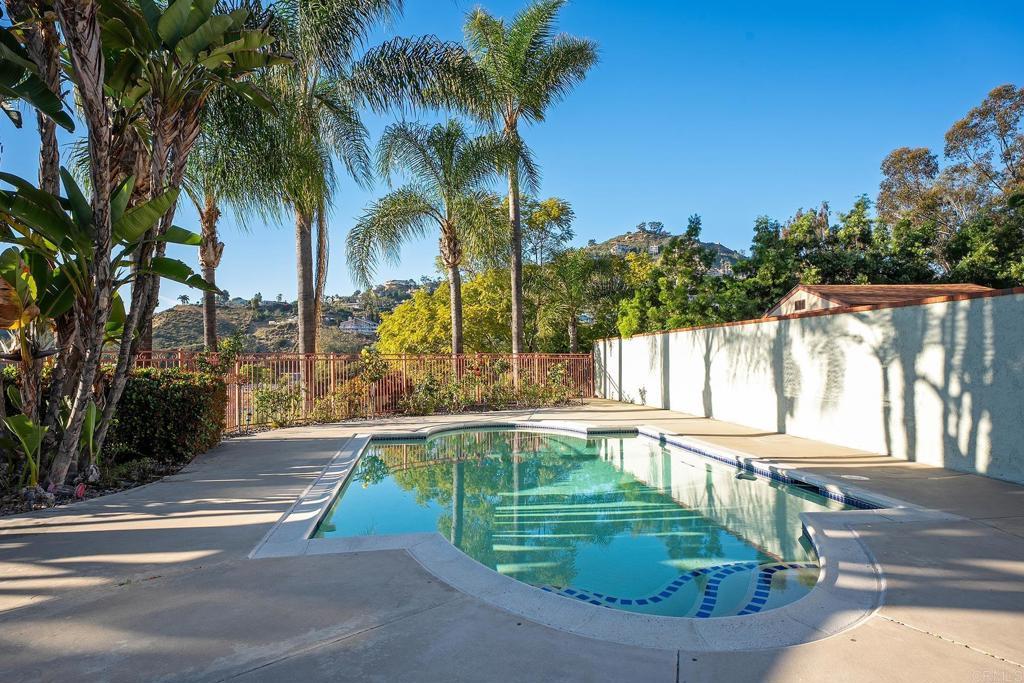 BEAUTIFULLY MAINTAINED 4 BEDROOM, 3 BATH VIEW HOME ON MT HELIX ON A .70 OF AN ACRE LOT AND THIS ONE IS LOADED, INCLUDING NEWER DUAL PANE WINDOWS AND SLIDERS,SOLAR, LARGE LIVING ROOM WITH FIREPLACE AND VAULTED CEILINGS, UPGRADED KITCHEN WITH GRANITE COUNTERS, CENTER ISLAND, STAINLESS APPLIANCES AND PANTRY, SHUTTERS, FAMILY ROOM WITH CUSTOM BUILT-INS AND A WET BAR, FORMAL DINING ROOM, INSIDE LAUNDRY, NEWER HVAC WITH NEW DUCTING, RAISED PANEL DOORS, NEWER WATER HEATER, NEWER ALARM SYSTEM, SPACIOUS BEDROOMS, HUGE PRIMARY BEDROOM WITH VAULTED CEILINGS AND A WALK-IN CLOSET, PRIMARY BATH HAS A DUAL VANITY ALONG WITH A SEPARATE TUB AND WALK-IN SHOWER, CEILING FANS, PROFESSIONALLY LANDSCAPED YARD WITH MULTIPLE COVERED PATIOS, ARTIFICIAL TURF, PALM TREES, ROSE GARDEN, BEAUTIFUL POOL WITH ALL NEW DECKING, STUNNING VIEWS, 2 CAR GARAGE, CUL DE SAC LOCATION, RV PARKING AND MUCH MORE. 4TH BEDROOM IS CURRENTLY BEING USED AS AN OFFICE AND DOESN'T HAVE A CLOSET.