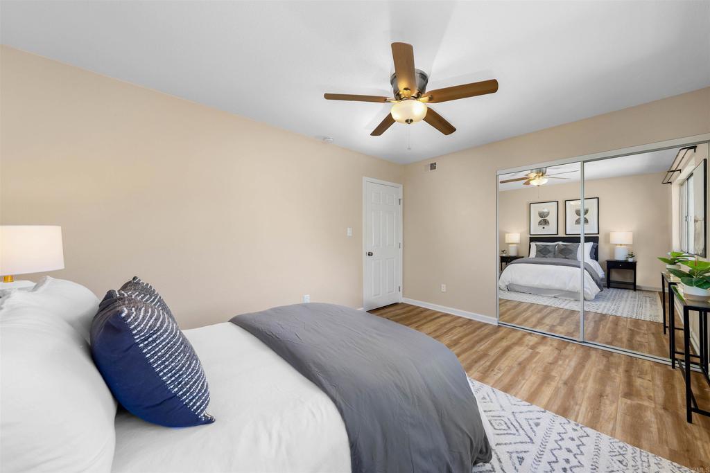 MOVE-IN READY. PRIME LOCATION. END-UNIT ADVANTAGE. Welcome to this beautifully updated second-floor, end-unit condo in the highly desirable 92120 neighborhood of San Diego. Perfectly positioned just one mile from SDSU and a short walk to Alvarado Hospital, this home offers a level of convenience that’s hard to find. As an end-unit, the space is filled with natural light, creating an open and inviting feel throughout. The layout features dual primary bedrooms, two full bathrooms, and a spacious living area designed for both comfort and functionality. Recent upgrades include new LVP flooring throughout, ceiling fans in both bedrooms, and a modern kitchen complete with granite countertops and ample storage. Step outside to your private balcony, where you can unwind while taking in north-facing mountain views. The community offers a pool, spa, and assigned parking, with easy access to major freeways, nearby parks, and everything San Diego has to offer.