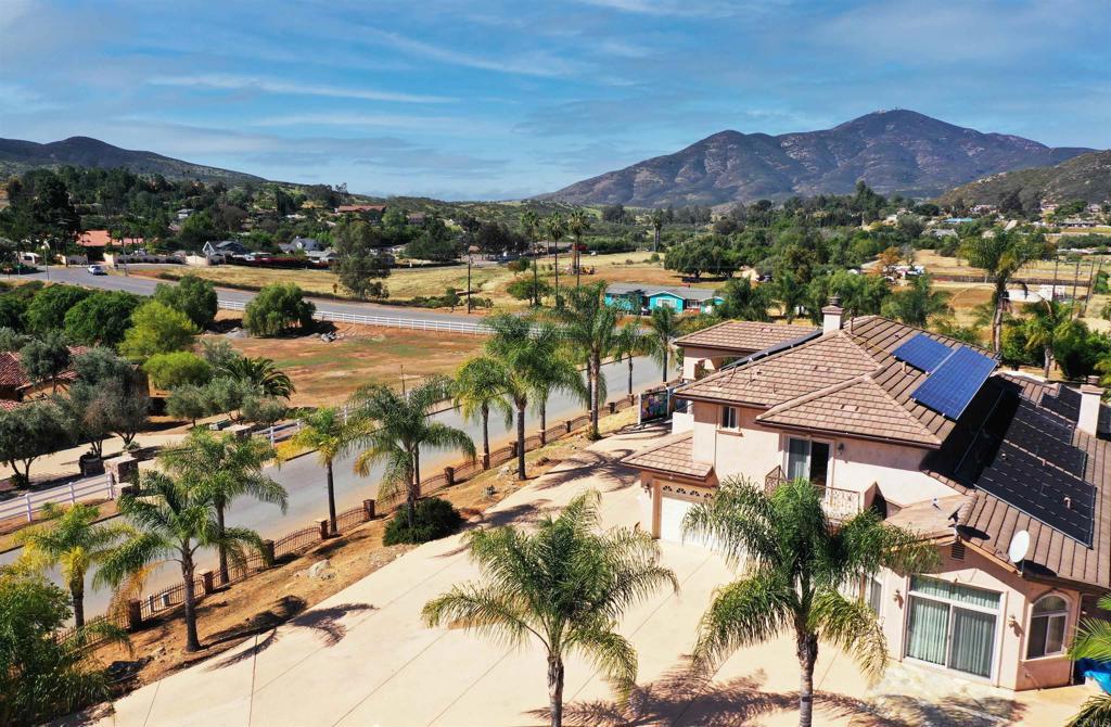Located in Proctor Valley’s most desirable neighborhood, this gated estate offers a rare opportunity to experience elevated living on a beautifully positioned corner parcel just over an acre. Surrounded by sweeping mountain vistas and open skies, the setting captures the essence of Jamul living while remaining just 10 minutes from Rancho San Diego and an easy 20-mile drive to Downtown San Diego. A grand arrival begins with impressive architectural presence and elegant wrought iron entry doors, opening to interiors defined by soaring ceilings, natural light, and timeless finishes. Rich travertine floors run throughout the main living areas, complementing the statement staircase and refined spaces that create an inviting yet sophisticated atmosphere. The formal living room is anchored by a custom precast concrete fireplace, while the formal dining area is framed by large windows that bring the outdoors in. Designed for both everyday comfort and entertaining, the open-concept layout seamlessly connects the main living areas. The kitchen is thoughtfully appointed with granite countertops, custom cabinetry, a walk-in pantry, and high-end appliances, flowing effortlessly into the family room and casual dining nook. The main-level primary suite offers a private retreat with tranquil views, a spacious walk-in closet, and a spa-inspired bath featuring a soaking tub and oversized shower. An additional bedroom on the first floor provides flexibility for guests or multigenerational living, while upstairs bedrooms share a full bath and include a dedicated workspace. Outdoors, the property transforms into a resort-style sanctuary. A custom rock pool with waterfall, slide, and raised spa is complemented by an outdoor kitchen, BBQ area, and expansive patio spaces designed for gathering and relaxation. Mature landscaping, including fifteen fruit and citrus trees, enhances the grounds, while a basketball court and open space offer flexibility for animals or a detached ADU. Additional features include owned solar, Tesla charger, a three-car garage, extended driveway, and full fencing for privacy and security. With no HOA, proximity to local wineries and golf, and a peaceful setting framed by natural beauty, this home delivers a lifestyle that feels both refined and effortless.