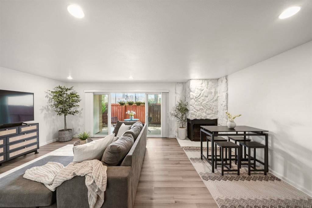 Don't Miss This Opportunity in Escondido! Why rent when you can OWN in Escondido for under $450K?! This is the opportunity you've been waiting for, act fast before it's gone! Welcome to 475 N Midway Dr #117, a desirable ground level corner unit offering the perfect blend of comfort, convenience, and privacy. This well-designed 2-bedroom, 2-bathroom condo with 964 sq ft of living space delivers both functionality and style. Step inside and immediately feel the difference with a bright, sun-filled living area highlighted by large double sliding glass doors that creates a seamless indoor & outdoor flow to your own private patio, perfect for relaxing or entertaining. As an added bonus for those chilly days, you can enjoy a traditional indoor wood-burning fireplace to provide a warm and cozy ambiance. This condo is truly move-in ready with fresh interior paint, upgraded vinyl wood plank flooring throughout and upgraded carpet in bedrooms, giving it a modern, clean feel. The stylish kitchen and bathrooms feature updated cabinetry, sleek countertops, stainless steel appliances and under-cabinet lighting that adds a warm, inviting touch. Enjoy the convenience of in-unit washer and dryer hook-ups which also includes a stackable washer and dryer appliance making everyday living easy and efficient. Enjoy the benefits of a gated community with amenities including two refreshing gated pools and picnic area just in time for sunny Southern California days. Conveniently located near freeways (I-15 & CA-78), schools, shopping, and dining, this condo puts everything you need right at your fingertips. And here's the lifestyle bonus, live close to some of North County San Diego's most sought after attractions! You're just minutes from the San Diego Zoo Safari Park for unforgettable wildlife adventures, and a short drive to LEGOLAND California for fun-filled days with family and friends. Plus, enjoy nearby wineries, scenic hiking trails, and all the charm this vibrant area has to offer. Whether you're a first-time buyer or savvy investor, this is your moment. Opportunities like this don't last, blink and it'll be gone! Schedule your showing as soon as it hits the market or risk watching someone else claim your keys!