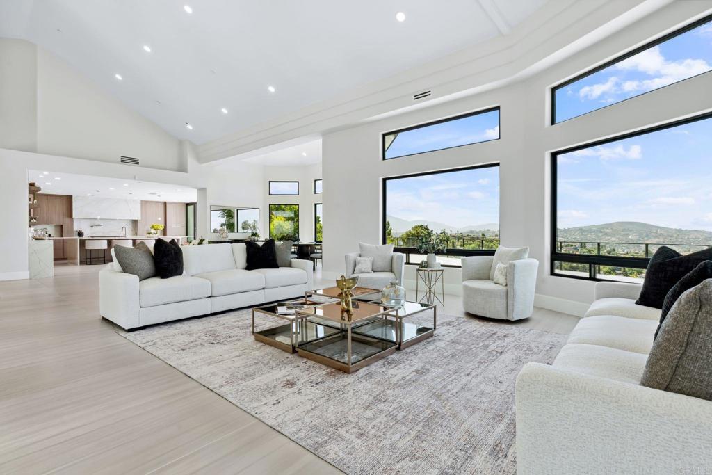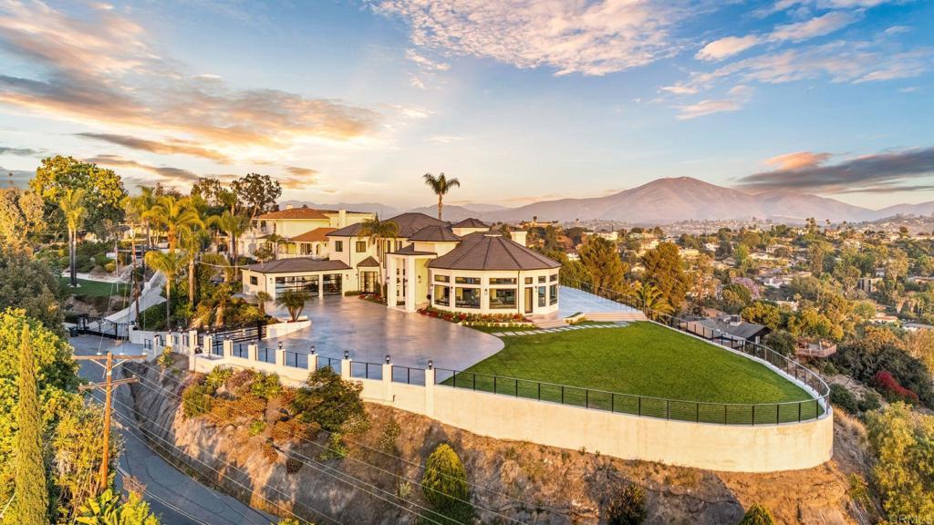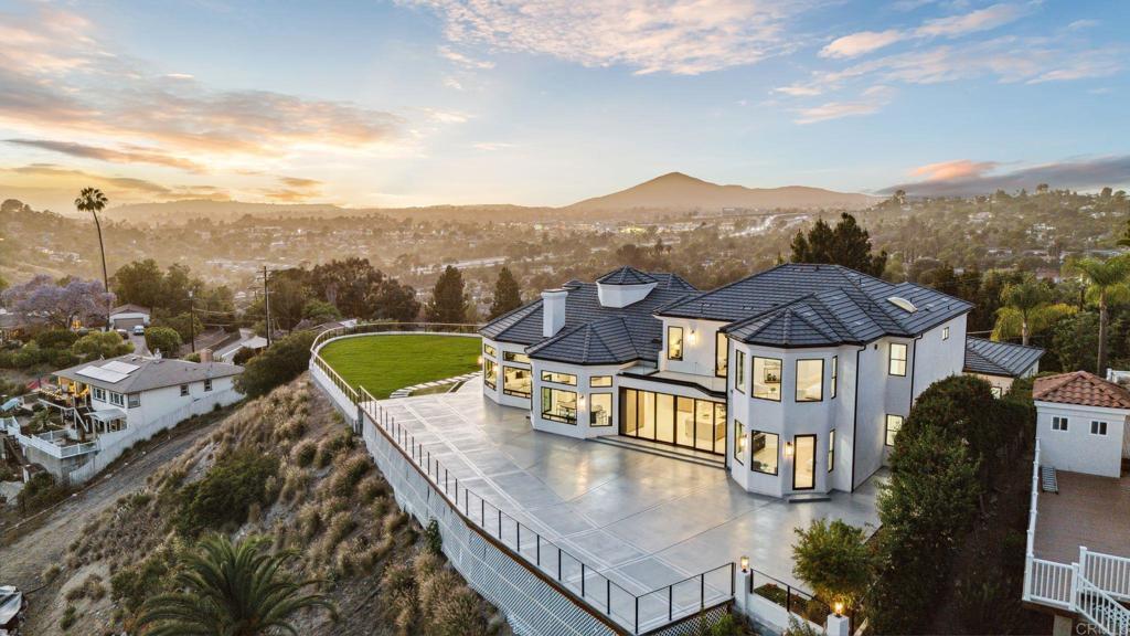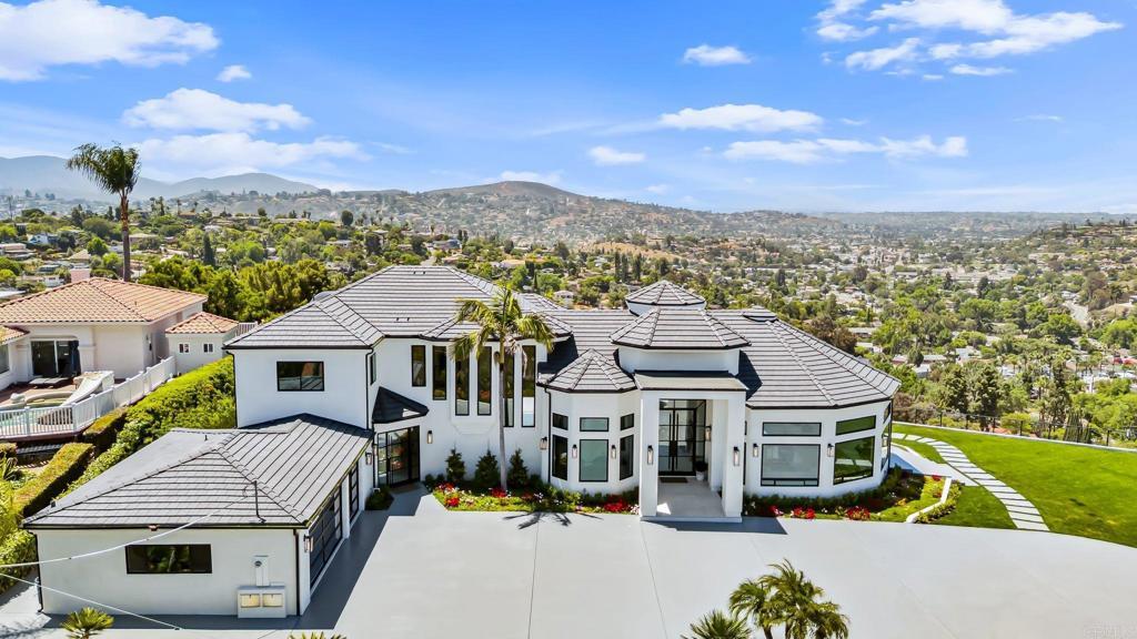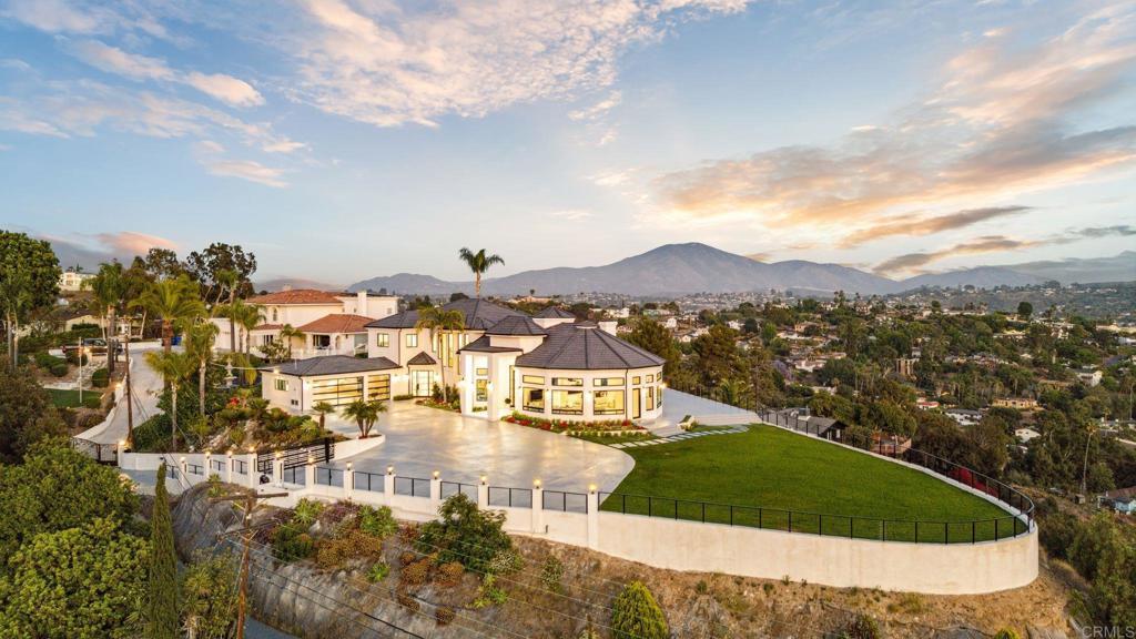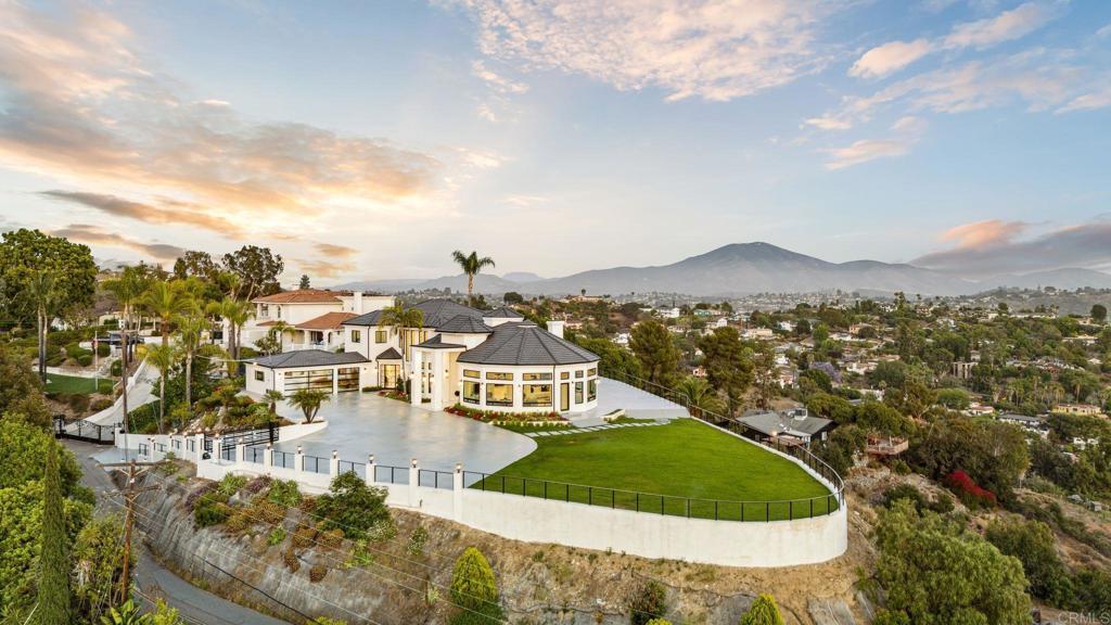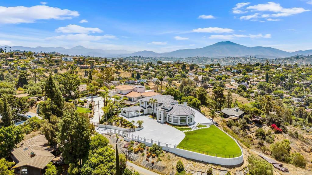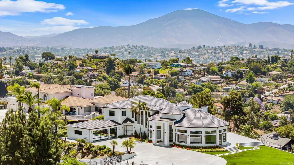 An Architectural statement with 320° unobstructed views from the mountains to the ocean, this reimagined Mount Helix estate blends modern design with Elevated Luxury. Privately gated and set on a rare .77-acre flat, usable lot, it features an oversized driveway and expansive outdoor space ideal for entertaining or future additions. Inside, soaring cathedral ceilings, floor-to-ceiling windows, and designer lighting frame a grand open-concept living area. The chef’s kitchen stuns with Thermador appliances, Sub-Zero refrigeration and wine storage, quartz waterfall island, and slide-away pocketing doors that open to a spacious deck and backyard. The main-level primary suite offers resort-style luxury with an oversized soaking tub, dual vanities, and dual walk-in closets. Upstairs: a second full primary suite and two large bedrooms, each with en-suite baths. A dedicated office, powder room, and oversized laundry complete this offering. This is more than a home—it’s "The One" that sets the bar.