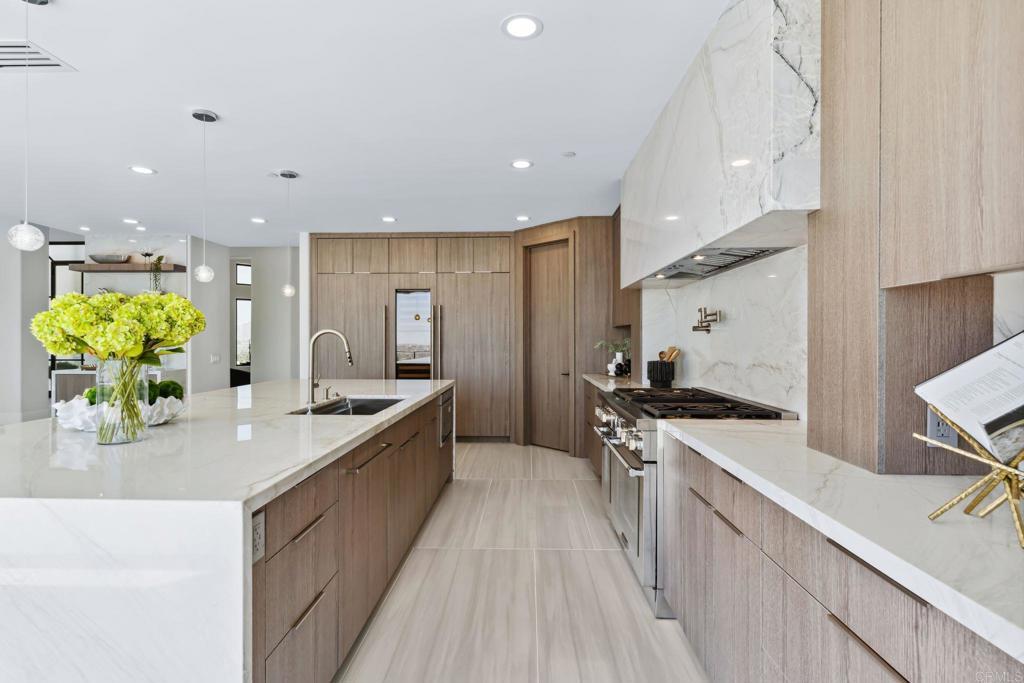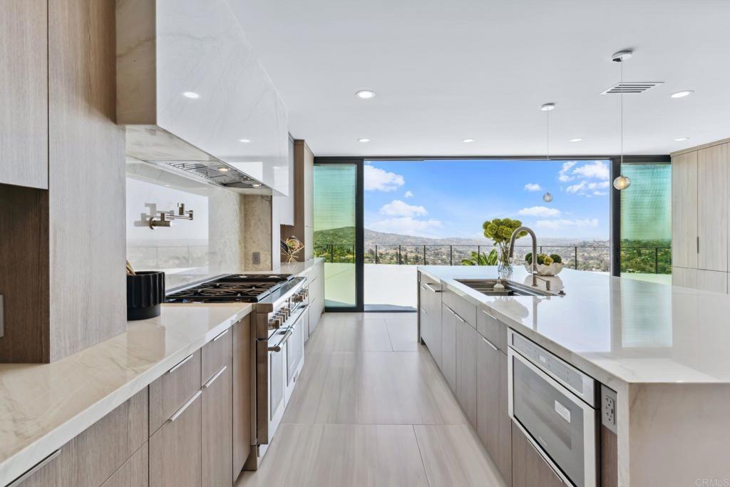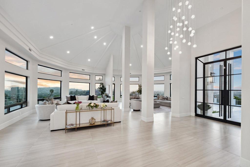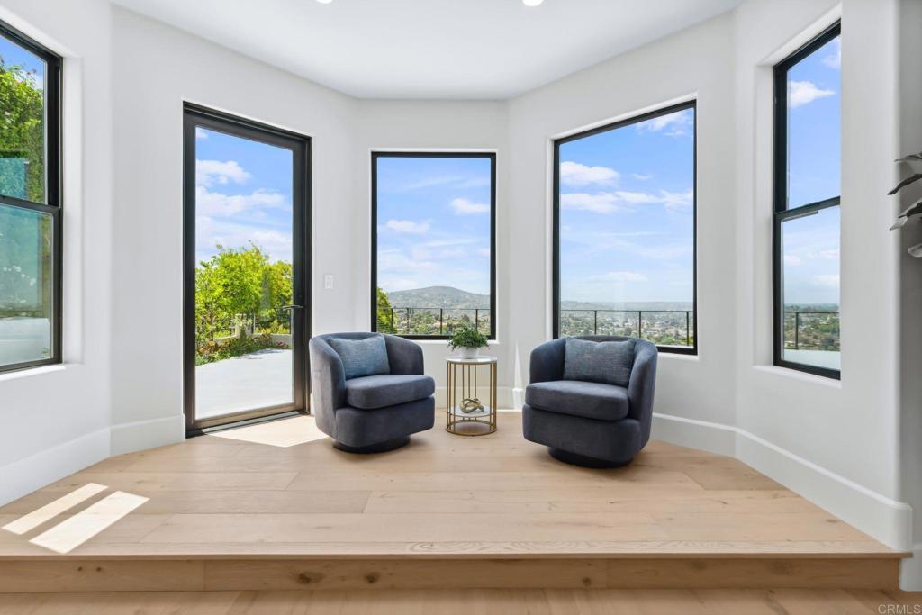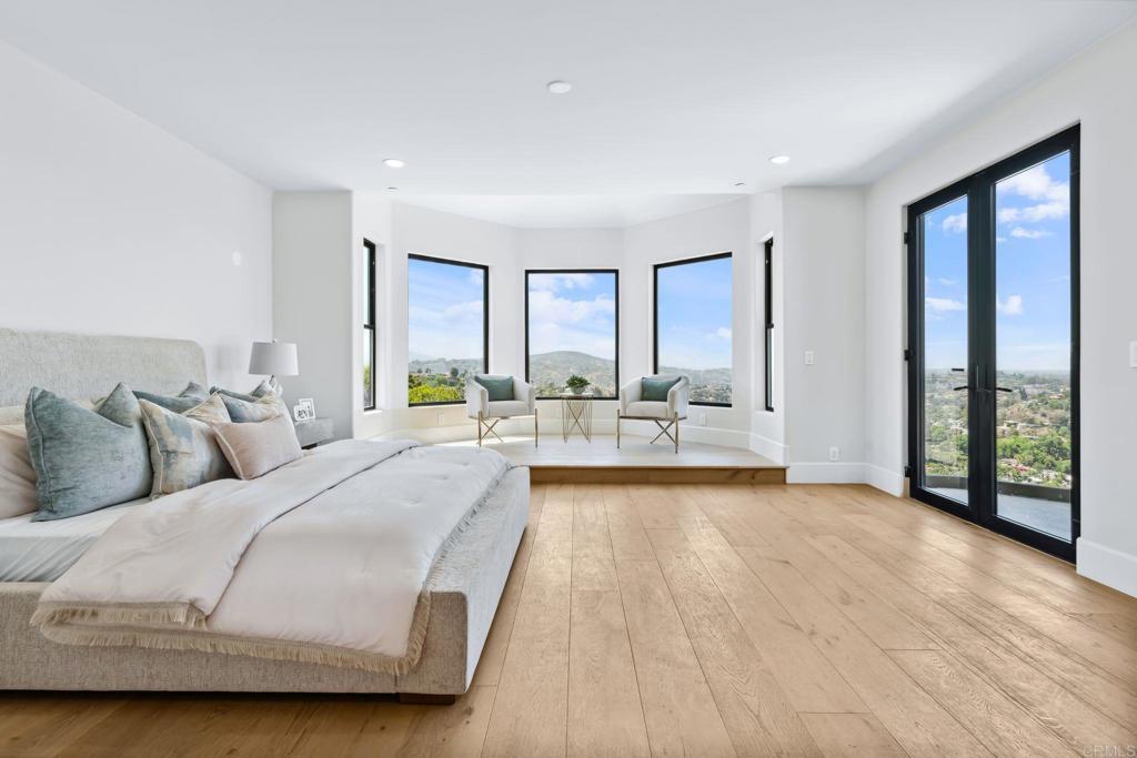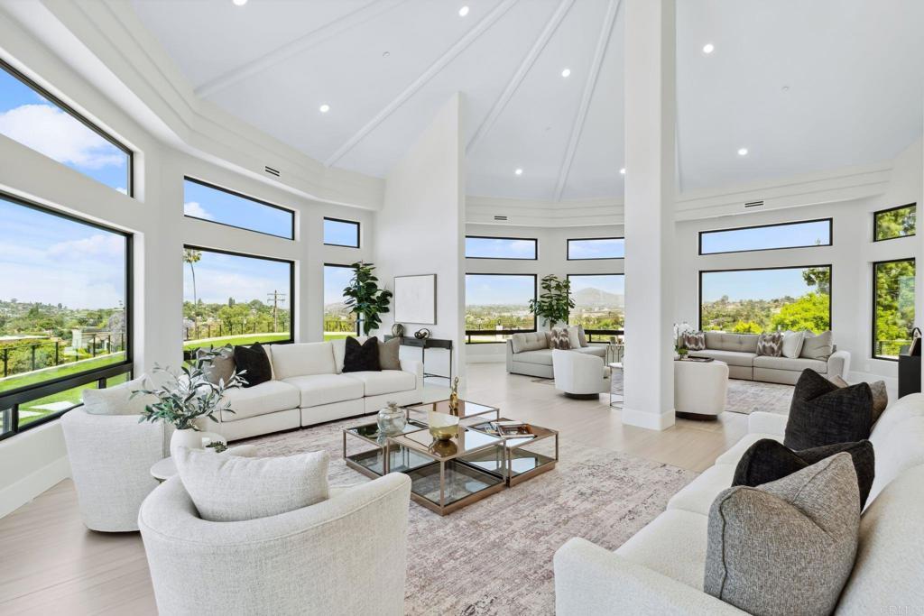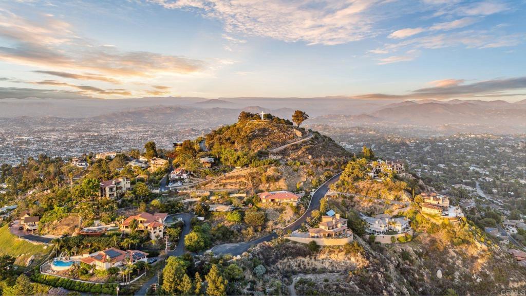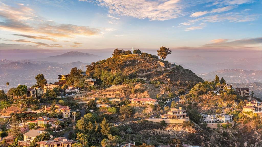 An Architectural statement with 320° unobstructed views from the mountains to the ocean, this reimagined Mount Helix estate blends modern design with Elevated Luxury. Privately gated and set on a rare .77-acre flat, usable lot, it features an oversized driveway and expansive outdoor space ideal for entertaining or future additions. Inside, soaring cathedral ceilings, floor-to-ceiling windows, and designer lighting frame a grand open-concept living area. The chef’s kitchen stuns with Thermador appliances, Sub-Zero refrigeration and wine storage, quartz waterfall island, and slide-away pocketing doors that open to a spacious deck and backyard. The main-level primary suite offers resort-style luxury with an oversized soaking tub, dual vanities, and dual walk-in closets. Upstairs: a second full primary suite and two large bedrooms, each with en-suite baths. A dedicated office, powder room, and oversized laundry complete this offering. This is more than a home—it’s "The One" that sets the bar.