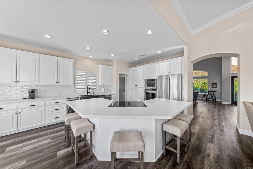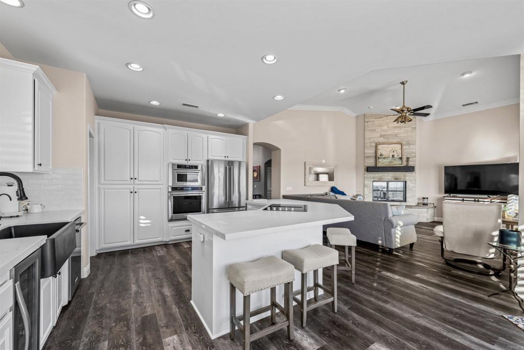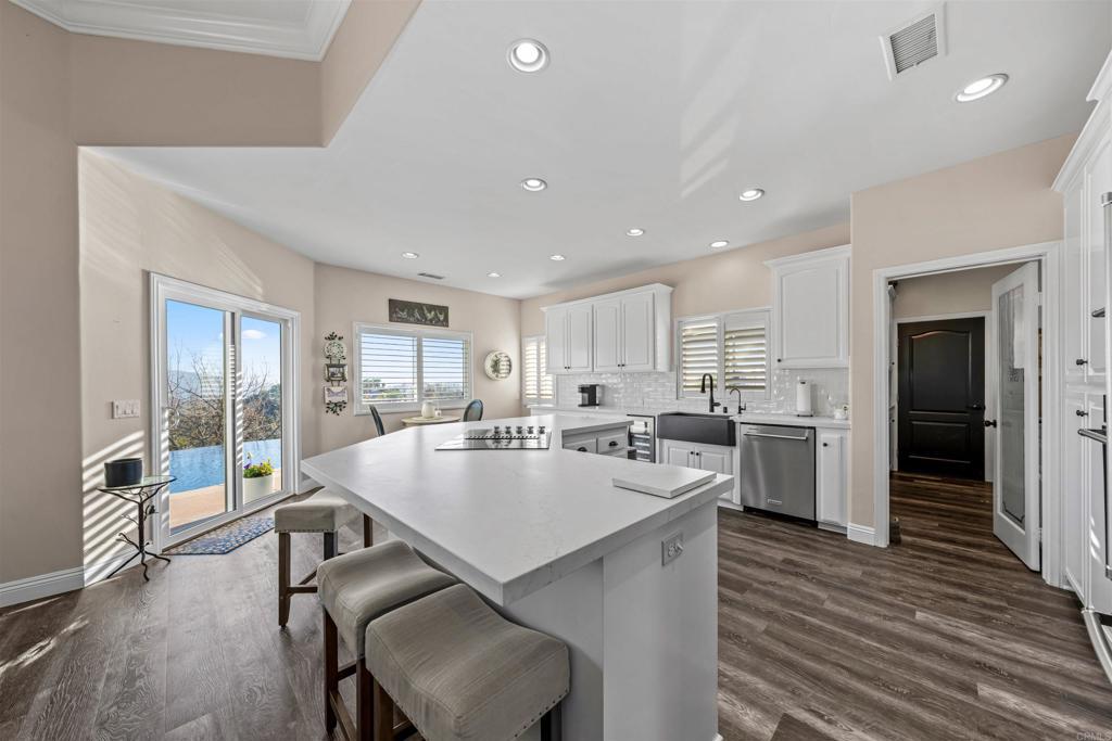 Welcome to this exceptional 4-bedroom, 3-bathroom modern farmhouse estate in Palo Verde Ranch, where over $500,000 in recent renovations meet breathtaking panoramic views and elevated country living. Blending classic charm with modern upgrades, this home offers the perfect balance of style, comfort, and functionality. Designed with a highly sought-after layout, the home features a primary suite on the first floor with its own fireplace, along with an additional full bedroom and bathroom downstairs—ideal for guests or multi-generational living. Upstairs, you’ll find a spacious office loft, two additional bedrooms, and a full bathroom, offering flexibility for today’s lifestyle. Inside, the home has been beautifully transformed with vinyl plank flooring, new carpet, fresh interior and exterior paint, and a fully remodeled kitchen featuring quartz countertops, a farmhouse sink, modern fixtures, and a brand-new backsplash. A standout feature is the custom walk-in pantry with its own sink and quartz countertops, combining both convenience and elevated design. All three bathrooms have been completely renovated, and the custom primary closet adds both elegance and functionality. A new fireplace and shutters throughout enhance the home’s warm, inviting aesthetic. Built for efficiency and peace of mind, the property includes 55 paid-off solar panels, a high-producing well (49 gallons per minute) with a 5,000-gallon holding tank, soft water system, and reverse osmosis drinking water. Fire-conscious upgrades such as fire-approved windows, fireproof rain gutters, and brush clearance provide added security. Step outside to your private retreat featuring gorgeous lush landscaping with mature trees, an avocado tree, a lemon tree, a lime tree, and beautiful flowers, along with a newly resurfaced Pebble Sheen pool with solar heating, propane, and wireless controls, an outdoor shower, and enhanced lighting. The property also offers RV parking with full hookups and dumping station, two fully powered sheds, and a garage solar hookup—perfect for both convenience and recreation. Located in the highly desirable Palo Verde Ranch community, this home offers space, privacy, and access to one of Alpine’s most sought-after neighborhoods.