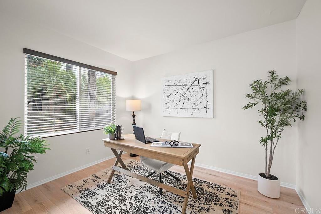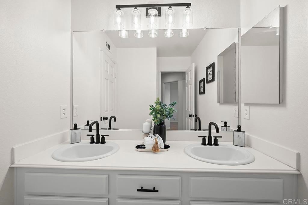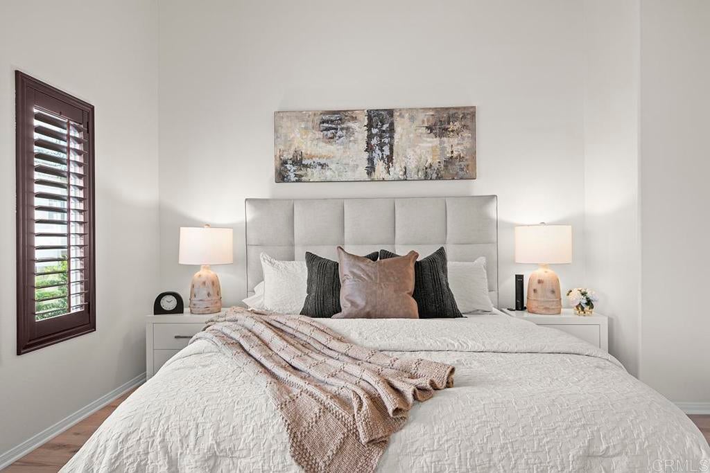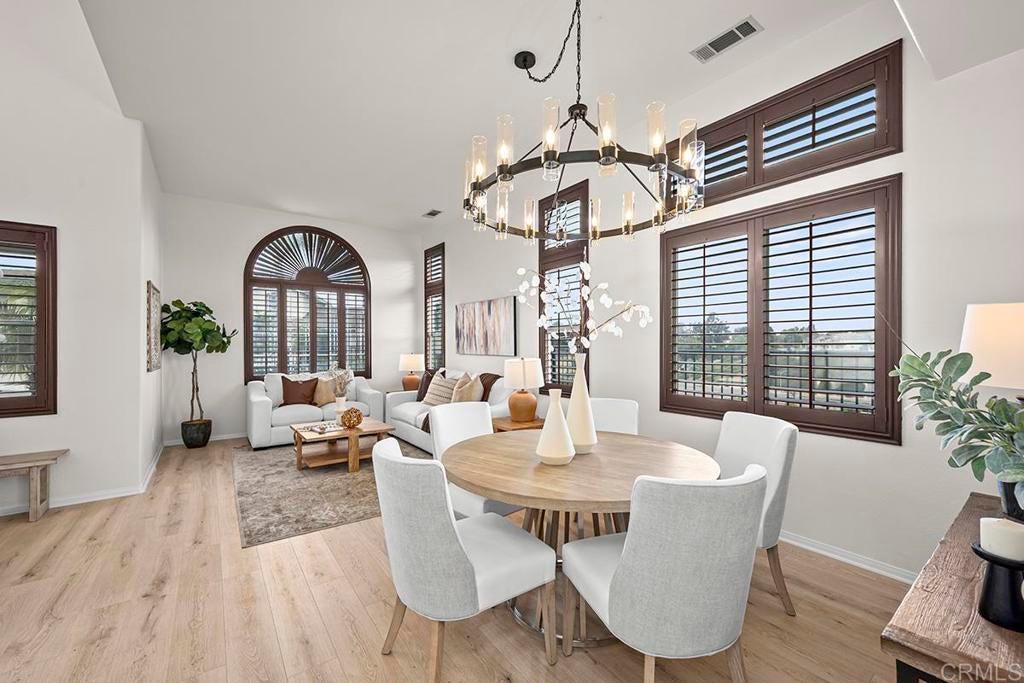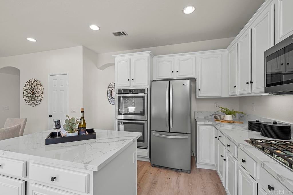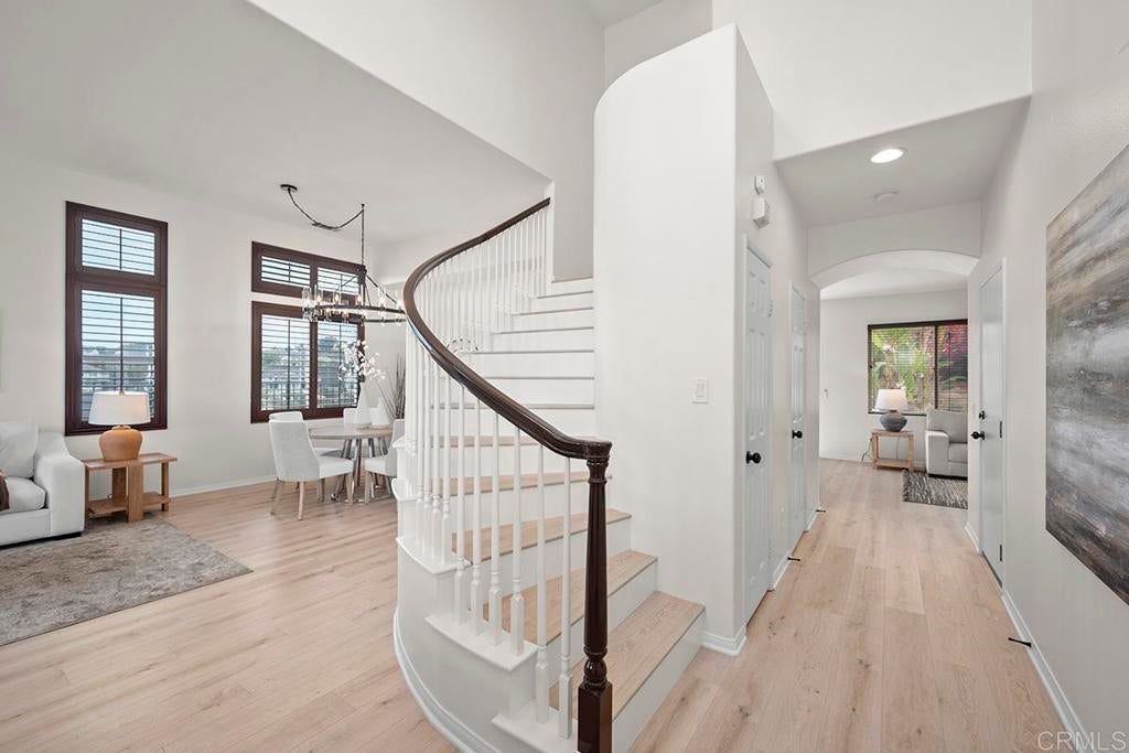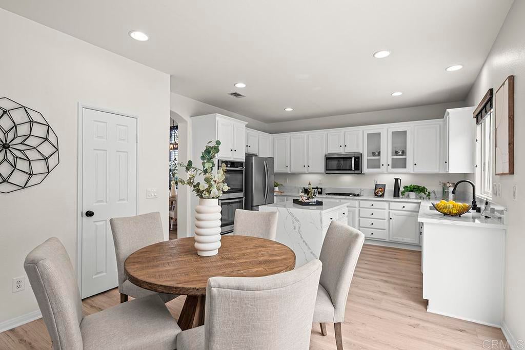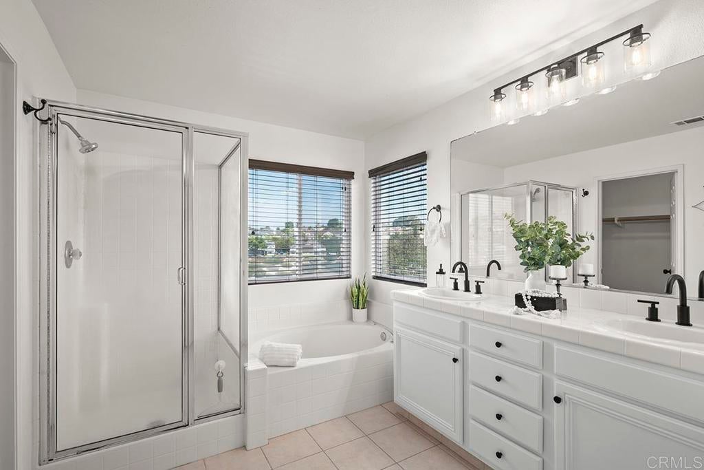 Exquisite move-in ready residence in the highly sought-after Otay Ranch Community ideally situated on a cul-de-sac with panoramic views and paid solar panels This beautifully upgraded home offers formal living room, dining room, 4 bedrooms plus office, 2.5 bathrooms and approximately 2,138 sq.ft. of sophitiscated living space. Thoughfully designed with elegance and comfort in mind, the home showcase fresh interior paint, stunning waterproof vinyl flooring throughout and customs wood shutters. The gourmet kitchen features white cabinetry, quartz counter tops, a center island and walk in pantry. A charming breakfast area and expansive family room with fireplace create the perfect setting for both everyday living and upscale entertaining. Designer light fixtures throughout enhance the home's modern aesthetic. An open concept lay out fill with natural light highlights scenic mountain views creating a serene and inviting ambiance. The luxurious primary suite offers a peaceful retreat. Spacious primary bathroom with walk in closet. Step outside to a beautiful landscaped backyard design for effortless entertaining and relaxation. Ideally located near top rated shools, parks, shopping and dining, this exceptional home seamlessly blendd style, comfort and convenience. Low Home Owner Fees and Mello Roos.