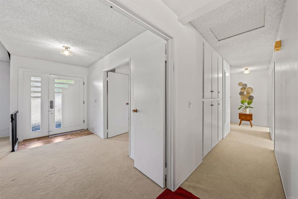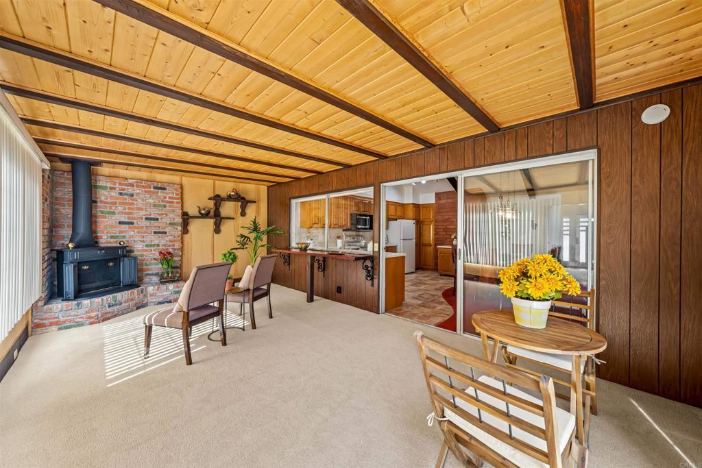 Welcome home to this well maintained 4-bedroom, 2-bath single-level residence nestled in this quiet and highly convenient neighborhood of Rancho Peñasquitos where homes are rarely available. Step inside to discover an inviting open layout highlighted by soaring vaulted ceilings and a cozy living room fireplace—perfect for relaxing or entertaining. The home features an upgraded kitchen and remodeled bathrooms, offering modern finishes and functionality throughout. Enjoy year-round comfort in the enclosed patio room, complete with its own freestanding fireplace—an ideal space for gatherings, a home office, or a peaceful retreat. The spacious primary bedroom suite provides a private sanctuary with ample room to unwind. Additional highlights include dual pane windows for energy efficiency, an attached 2-car garage, and easy-care landscaping that enhances curb appeal without the upkeep. With its combination of comfort, style, and move-in-ready condition, this home is a rare find in one of San Diego’s most desirable communities. Don’t miss this opportunity to make it yours!