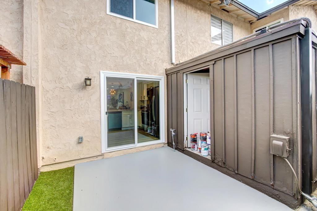 Welcome to this Charming 2-bedroom, 1-bathroom Condo in Santee! The open-concept living room is perfect for relaxing or entertaining. Updated Kitchen: Equipped with shaker style cabinets, quartz countertops and modern stainless steel appliances. Bedrooms and bath are upstairs, downstairs is a spacious living room, dining area, and the updated kitchen. Bonus: the new central air conditioner was installed just last year! The kitchen opens up onto a private, fenced patio, with a storage closet. There is a single space within a multiple-car garage, with storage, and an assigned open parking space in front of the garage. Additional open parking is just in front of the unit, and throughout the complex. For leisure and recreation, the complex features include a large open lawn adjacent to the pool area! The common laundry room is close to the unit.