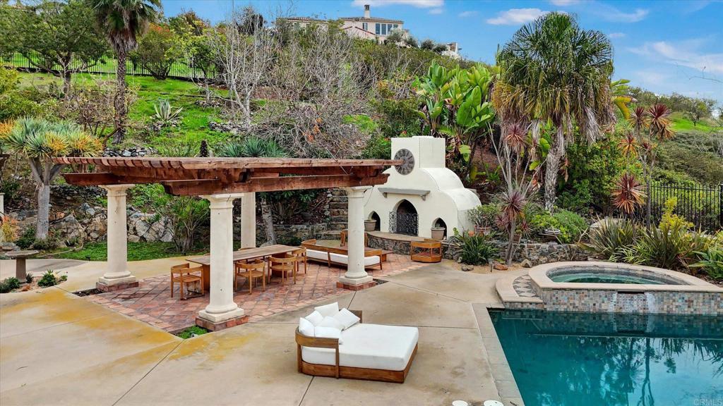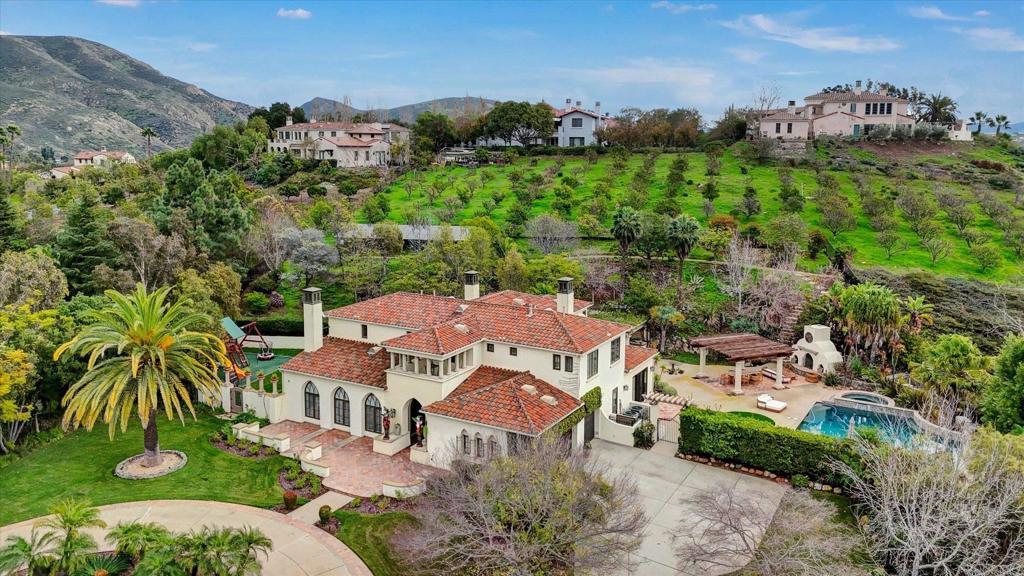 Experience an unmatched level of elegance in this Mediterranean Masterpiece located within the exclusive, guard-gated community of Cielo. Tucked away on a quiet cul-de-sac, this estate boasts a rare certified organic citrus grove and a lush, tranquil rose garden. The interior features a grand first-floor primary suite and a versatile floor plan with an overabundance of secondary rooms, perfect for dual home offices or a private gym. Located within the prestigious Roger Rowe School district and the premier amenities of Cielo, including tennis courts, a fitness center, and an Olympic-sized pool. The home itself is an entertainer's dream, featuring, multiple lounging areas, and a private pool and spa. Enjoy the ultimate Southern California lifestyle with a resort-style pool and spa, a massive outdoor kitchen, and fully paid home and pool solar