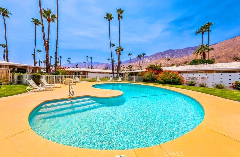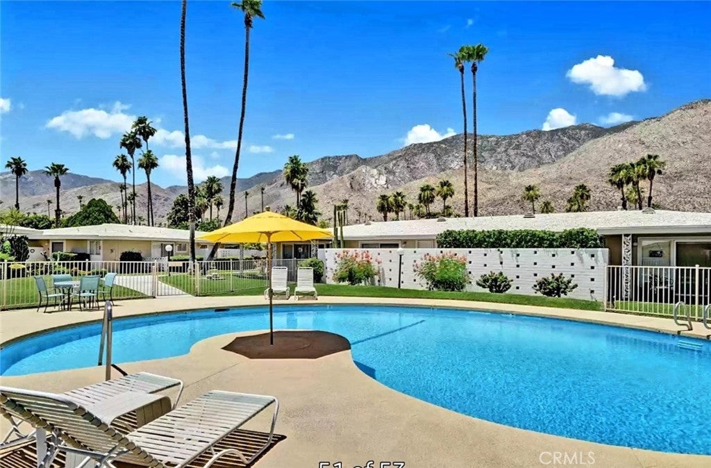 Canyon Country Club Colony, this furnished (or unfurnished) 2 bed 2 bath unit is a time capsule into the past of what first drew Hollywood celebs to Palm Desert. Don't miss a chance to live in this trophy property, and at the same time, catch a small glimpse of what the Desert Cities were founded upon. You will find very few condos of this vintage design and mid-century modern architecture, so carefully preserved while also full of modern amenities. Close to downtown, in South Palm Springs, nestled against the beautiful San Jacinto mountains with lush green belts, gorgeous flowerbeds, and soft breezes blowing between the palms. The kitchen has everything to cook a gourmet meal for entertaining. Views of the fairway and mountains make enjoying your morning coffee on your patio a daily highlight. Spend the day relaxing by one of the three the pools, or slip into the hot tub surrounded by breathtaking views of the mountains, or star gaze from your patio at night. Located in the private community of Canyon Country Club Colony, this special unit has rare placement with an open view of the lush landscape in front of you, and looking right out on to the tee box. Canyon Country Club Colony is located on the green fairways of Palm Spring's most beautiful golf course and overlooking 3 emerald green lakes. It won't get any better than this and is recognized as one of the best of its class for Mid Century Modern in South Palm Springs.