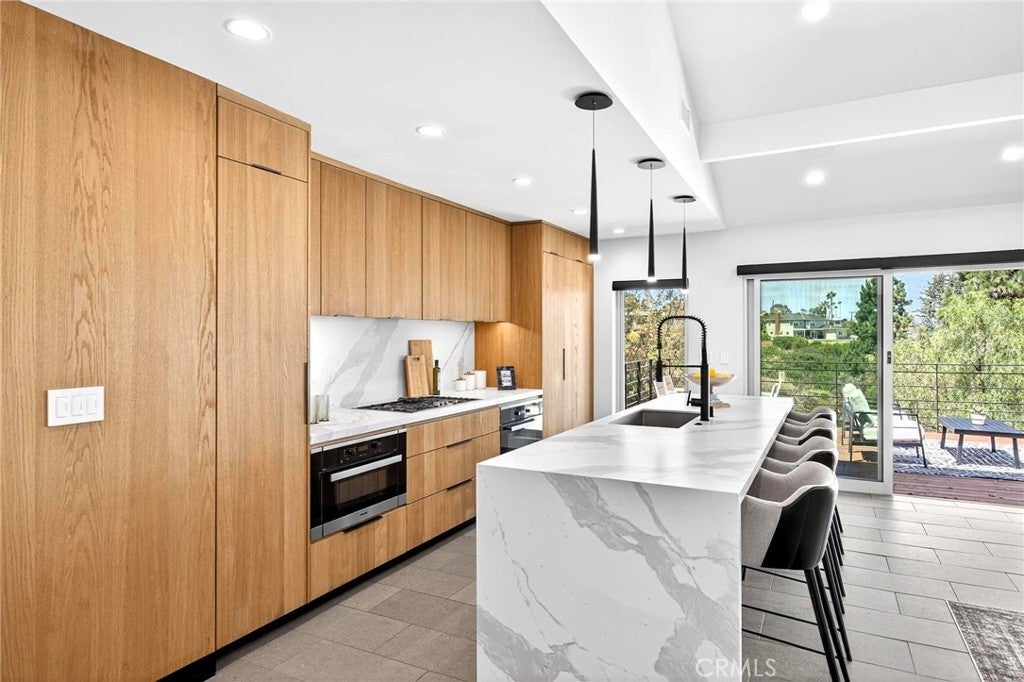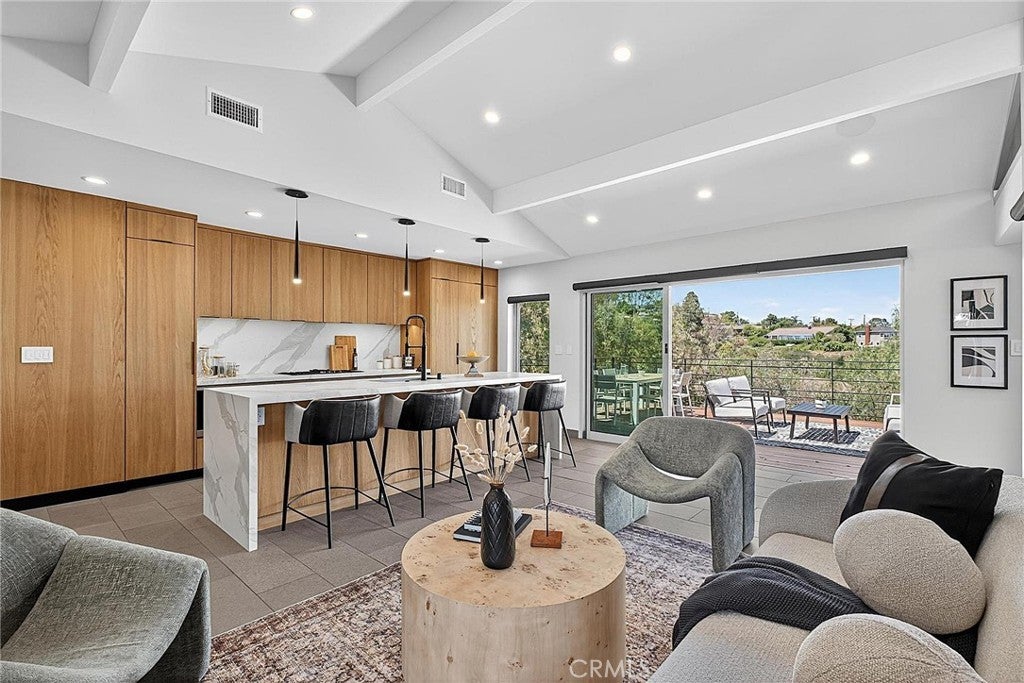 Presenting 6441 Via De Anzar ~ Step into a world of comfort, class and sophistication with this stunning 3-bedroom 3-bath residence featuring excellent overall design, flow along with an unmatched living experience. This gorgeous Resort-Styled View home is Zen inspired and features a modern flare. Upon entering through the Kerf cut flush pivot entry door you'll be welcomed by a thoughtfully designed layout featuring a spacious living room that seamlessly connects to a modern kitchen outfitted with newer high-end Miele appliances, custom Blum soft close cabinetry, Thermador refrigerator/freezer along with a beautiful kitchen island. The Fleetwood sliding windows allow for a seamless transition between indoor and outdoor living. The open-air entertaining deck spaces are perfect for al fresco dining, morning coffee, or sunset cocktails. A stunning blend of style and function, this home features a designer-inspired open floor plan and premium finishes that elevate every space along with a warm family home feel. All three bedrooms are spacious and feature rear yard/deck access points. The resort-styled primary retreat features a massive walk-in closet, a spa-inspired walk-in En-Suite bath, dual sinks, Kohler Numi smart toilet, large soaking tub, Kallista custom black matte fixtures and a Seura mirror TV. The home is adorned beautifully & adjusts to any lifestyle from the family/kids study-play area, to the sophisticated adult entertaining space. Take notice of the massive storage cabinet space on the lower level along with a dedicated tech room and a separate fire rated safe/storage room. Additional features include professionally installed and fully integrated smart home iPads controlling much of the home along with the Sonos indoor/outdoor speakers, brush nickel aluminum windows with custom rollup blackout shades, air conditioning and a mini split in the garage, automated smart water monitor shut-off, Wi-Fi leak detector, Lutron smart Wi-Fi switches, my Q smart garage door opener, Nest protect smart smoke, CO2 detectors / thermostats and a Honeywell ADT alarm system. The Home Commands Attention at every corner. Come take a look at this Stunning Residence !!!