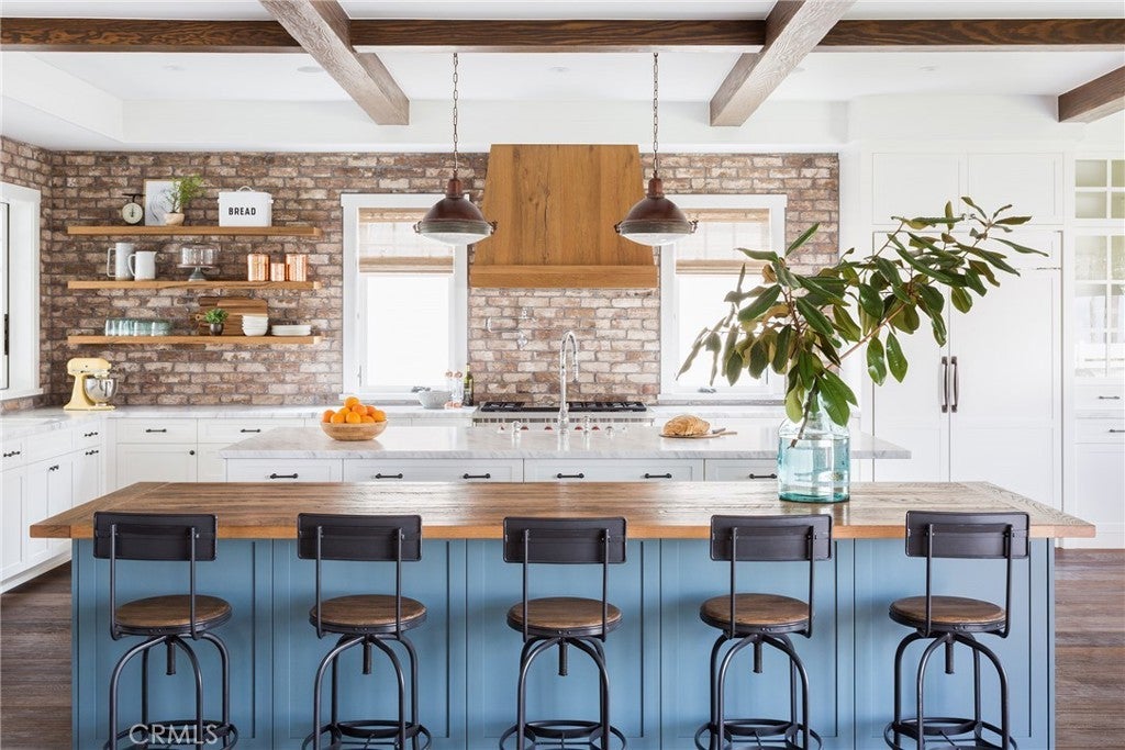 Built in 2017 from the ground up, this custom Coastal Farmhouse proves that true luxury is found in the details. Wide-plank wood floors, reclaimed barn wood, shiplap accents, exposed beams, and sleek Lowen black-metal windows set the stage for a home that feels timeless. At its center, the great room unfolds with a dramatic double-island kitchen complete with Wolf and Sub-Zero appliances, flowing effortlessly to the living room, formal dining room, and a pass-through pocket window to the outdoor bar, lounge with fireplace, and built-in BBQ. Upstairs, the primary suite is a private sanctuary with vaulted ceilings, French doors, a balcony, and sweeping ocean views, while the secluded, main level guest suite with its own entrance offers perfect hospitality. Downstairs, the 814-square-foot finished basement adapts as an exercise studio, playroom, or theater. Designed for California living, the saltwater pool, spa, fire pit, and multiple gathering spaces blur the lines between indoors and out, enhanced by Sonos sound with nine zones, Nest climate control, RTI automated lighting, and app-controlled pool systems. Capped with a standing-seam metal roof and surrounded by beautifully landscaped grounds with ample parking, this is more than a home, it’s a statement of design, lifestyle, and innovation.