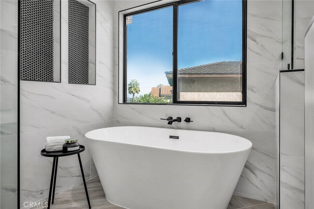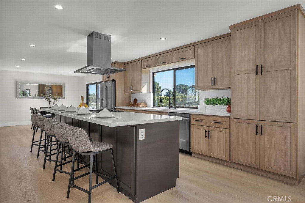 Welcome to this beautifully updated & remodeled 4-bedroom, 3-bathroom home, located in the optional Palos Verdes Peninsula School District spanning approximately 2,450 square feet on a generous 7,481-square-foot lot with one bedroom and bathroom located on the first floor. Thoughtfully transformed from its original state, this home has been upgraded with modern, high-end finishes, while maintaining an inviting, timeless appeal. The open-concept design downstairs seamlessly connects the living, dining, & kitchen spaces, making it perfect for both entertaining & family living. Upstairs, the enlarged primary bath offers a spa-like retreat, complete with luxurious finishes & a modern touch. Nestled in a prestigious, peaceful cul-de-sac within the highly sought-after Rancho Palos Verdes neighborhood, this home is part of one of the top school districts in the nation, offering the best in education & community. The home features new 6" luxury Bologna vinyl plank flooring, oak & maple cabinetry, Quartz Koville Calacatta Serene countertops that bring a sleek, contemporary style throughout. A brand-new air conditioning & heating system ensures optimal comfort year-round, while the upgraded electrical panel & double-pane windows offer enhanced energy efficiency. Kohler fixtures add a touch of elegance to the kitchen, and sleek black fixtures enhance the bathrooms, complemented by dimmable LED vanity mirrors with an anti-fog feature. The stunning new cedar front door, concrete roof tiles, and fresh landscaping enhance the home’s curb appeal. A new concrete driveway and patio create a welcoming entry, and the home’s Swiss Coffee interior paint, paired with Pure White exterior paint and black trim, gives it a fresh, modern look. The kitchen is a chef’s dream, featuring brand-new stainless steel appliances, ample counter space, and a layout that's perfect for both cooking and entertaining. The primary suite offers a spacious retreat, complete with an enormous closet with built-in storage. All bathrooms have been meticulously remodeled with high-end finishes, and the home also boasts a beautifully remodeled chimney. Outside, the backyard offers breathtaking views of the Palos Verdes Hill, providing the perfect setting for relaxation or entertaining guests. This home blends modern design with traditional charm, offering a truly remarkable space for its new owner. Don’t miss out on the opportunity to make this stunning property your own!