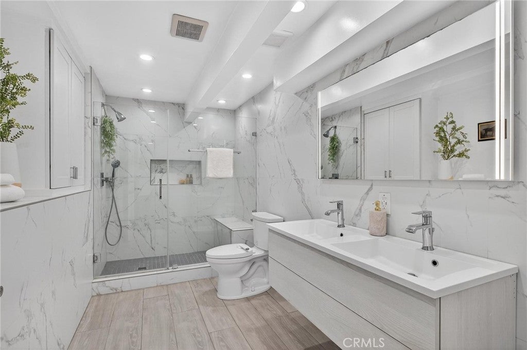 Welcome to this warm and inviting single family home located in North Redondo’s Golden Hills. Walkable to the highly sought-after and locally renowned Jefferson Elementary School. Set on an oversized lot, twice the size of many neighbors', this property has a true commodity, a rare large, flat backyard—perfect for play, gardening, or future possibilities, plus a flat and usable private front yard. Inside, the home has updates aplenty, with 3 bedrooms and 2 bathrooms, including a huge primary suite. You have to see to believe just how large it is. This unique floor plan includes both a living room on the main level, and a family room downstairs, providing flexibility for both everyday living and entertaining. Built-in cabinetry and storage closets throughout offer a place for all your stuff - an organizer's dream. With the entire home renovated in 2018, this home offers modern comfort and design features, including Milgard doors and windows, and an upgraded 200A electrical panel with EV charging. The updated kitchen and main living areas reflect an open design with recessed lighting, central heat and air, and direct access to a large (~400 sf) deck, perfect for grilling and outdoor gatherings, perched atop your private sanctuary of flora and citrus trees. The home also enjoys a private front yard with mature hedges for privacy, a welcoming white picket fence, and an updated garage door, adding to its curb appeal. Located on one of the best streets in the Golden Hills, just a short walk to Hermosa Beach and the Pier, this is a truly family-friendly home with space, charm, and an unbeatable location in the heart of the South Bay.