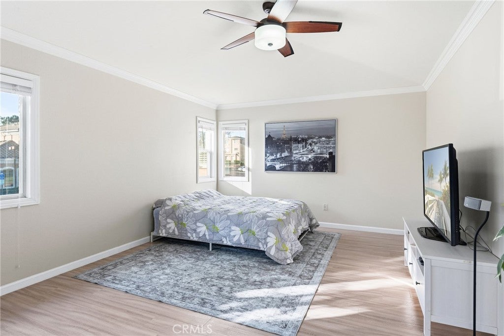 Discover modern coastal living in this beautifully maintained detached home located within 24-hour guard-gated Harbor Village community. Just minutes from the ocean, shopping, and freeway access. This light-filled two-story residence showcases soaring foyer ceilings, sleek laminate wood flooring, and an open, airy floor plan designed for today’s lifestyle. The contemporary kitchen features stainless steel appliances, including a Whirlpool dishwasher, refrigerator, Samsung 5-burner gas range/oven, and farmhouse-style sink. The spacious primary suite offers generous living space, a walk-in closet, and a dual-sink vanity. Relax in the private backyard retreat enhanced with pebble-stone hardscaping, premium artificial turf, and UNOBSTRUCTED BLUE-SKY VIEWS. Additional highlights include tinted windows for privacy, an AC system, and a two-car garage with direct access. Residents enjoy resort-style amenities including two pools (one Olympic-sized), a fitness center, playgrounds, sports courts, and BBQ areas. This turn-key home perfectly combines comfort, style, and convenience.