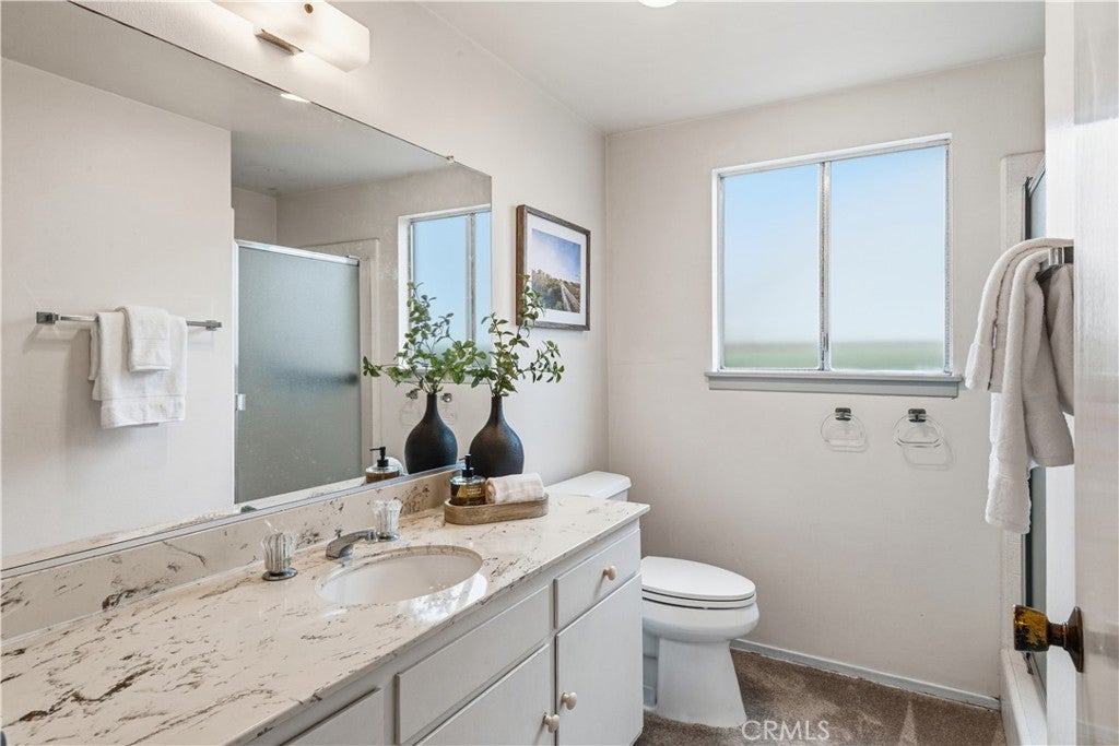 Set on a large lot, with panoramic ocean views and endless potential, this could be your forever home! A spacious living room, with its warm fireplace and ocean / sunset views leads to the formal dining room. The bright kitchen has numerous windows and casual lounging area. The split level design features 3 bedrooms upstairs, highlighted by a generous primary suite with adjoining office, as well as an inviting family room. Downstairs you’ll find a second family room, two additional bedrooms, a laundry room and direct access to the 3-car garage. Outside, the expansive, flat backyard offers plenty of room to play, garden or design your dream outdoor living space, all while enjoying the ocean views. Ideally situated near the end of a quiet cul-de-sac, and just moments from shopping and top rated schools, this home combines space, location, view and potential in one remarkable package. Don’t wait!