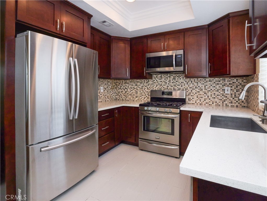 Finally, a rare opportunity to own this beautifully upgraded 2 bed + den, 2.5 bath townhome in the highly desirable “ Windemere On The Green " community! This unit is in a great central location far from street noises and close to guest parking. As you step inside, you’ll immediately notice the open layout with soaring ceiling. It features a spacious living/dinning room with adjoining den area which is large enough to set up an office, beautifully remodeled kitchen with stainless steel appliances, luxury laminate flooring throughout, a marble fireplace and two private patios. The main floor also has an upgraded ½ bath and breakfast nook. Upstairs you will find two en-suite bedrooms, including a spacious primary bedroom with sitting area and tastefully upgraded primary bathroom with ample closet space. The other bedroom has its own updated full bathroom. Down stairs, a generously sized, direct access 2- car garage provides storage space and a laundry area, as well as a versatile multi- purpose bonus room ( It's not included total square footage). Additional features include central A/C and heating with Nest thermostat, electric vehicle charger and newer water heater ( a few month old ). The Windemere community offers residents exclusive amenities, including a gated entry lined with trees, a clubhouse featuring a fitness center, tropical pool with jacuzzi, lap pool, meeting room, billiard room, racquetball court, indoor basketball court, and much more. The HOA includes Water, Trash, basic cable/high-speed internet, Common Area Maintenance and Fire Insurance. Located just minutes from Wilson park with its biweekly Farmers market and close to Del Amo mall, supermarkets, restaurants, freeways, beach and so much more! This move-in condition property presents a prime opportunity for a lifestyle of comfort and convenience.