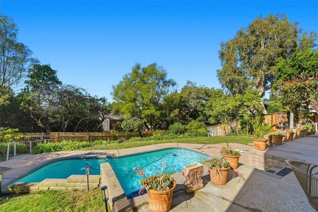 Nestled in the heart of prestigious Palos Verdes Estates, this beautifully updated coastal residence offers the perfect blend of elegance, functionality, and lifestyle. Ideally located within walking distance to Palos Verdes Intermediate School, this 5-bedroom, 5-bath home has undergone extensive upgrades in the last three months, delivering turnkey coastal living. Sun-filled interiors showcase new hardwood flooring, fresh interior and exterior paint, and new appliances throughout. Designed for both entertaining and everyday comfort, the home features a formal dining room, spacious family room, and multiple balconies that capture ocean views and refreshing sea breezes. The lower level offers a newly added kitchenette, ideal for guests, multigenerational living, or extended entertaining. Additional highlights include two laundry rooms, a finished garage perfect for a home office or gym, EV charger, and thoughtful modern conveniences throughout. Lots of storage and bonus room for kids. Outdoors, enjoy a private retreat with a sparkling pool, beautifully landscaped grounds, and direct access to nearby coastal trails—perfect for morning walks or sunset strolls. Coastal sconces and refined details complete the home’s timeless seaside charm. A rare opportunity to own a fully refreshed coastal estate in one of Palos Verdes’ most sought-after neighborhoods.