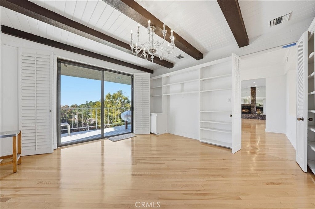 • Interior FeaturesBeamed Ceilings, Wet Bar, Balcony, In-Law Floorplan, Pantry, Bedroom on Main Level, Entrance Foyer, Primary Suite, Walk-In Closet(s), Partially Furnished, Storage