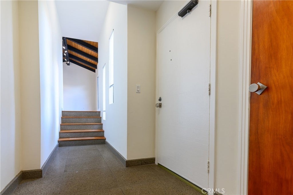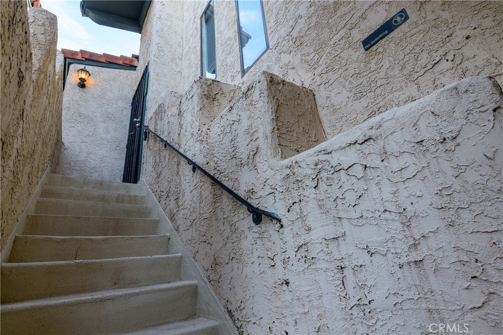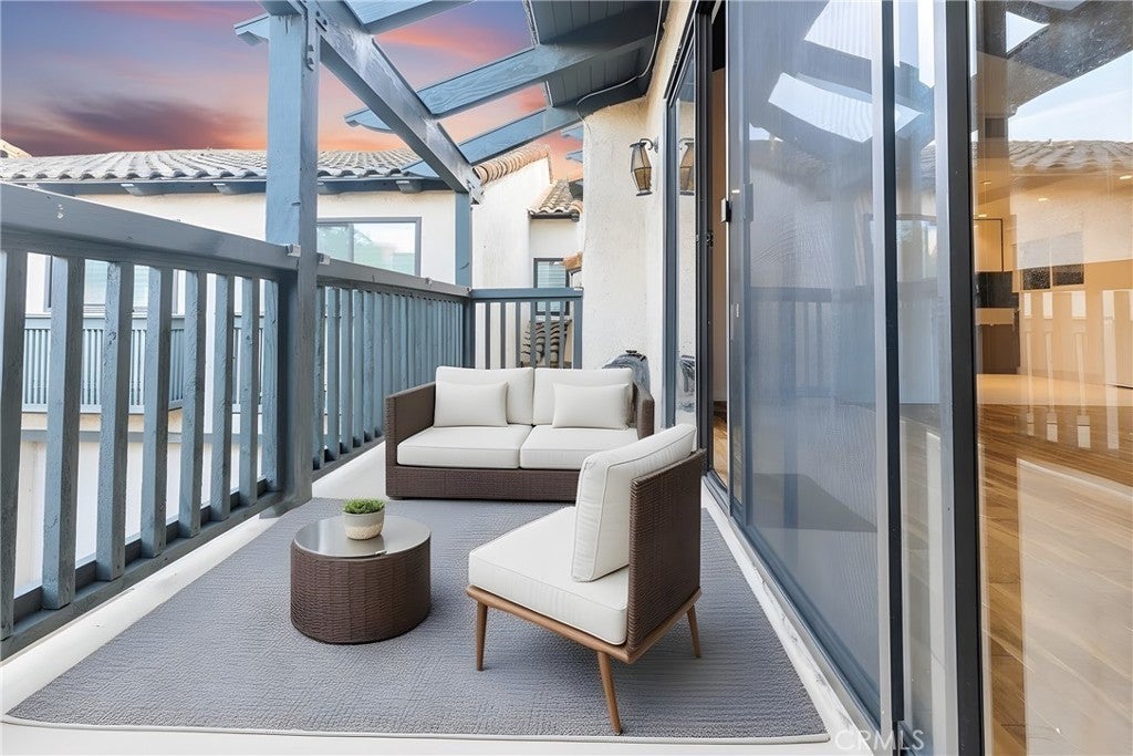 Welcome to The Courtyards in Rancho Palos Verdes—an inviting, beautifully updated home in a highly sought-after community. This refreshed 2-bed, 2-bath residence offers an airy living space with wood-beam ceilings, expansive 8-foot sliding glass doors, and naturally finished hardwood floors that create a seamless indoor–outdoor feel. The remodeled kitchen features modern stainless steel appliances, a large stainless steel sink, contemporary cabinetry, and a striking green glass-tile backsplash, while both bathrooms showcase sleek European-inspired finishes. The spacious primary bedroom includes a walk-in closet and a bright south-facing window, and the second bedroom provides excellent flexibility for a variety of uses. Enjoy the balcony off the living room or relax in the private deck and backyard area—rare features within the community. Additional upgrades include hardwood and Terrazzo flooring, crown molding, recessed lighting, double-pane windows, and ceiling fans. A generous bonus area off the garage offers space for a home gym, workshop, or creative studio, complemented by a dedicated laundry room with extra storage. Residents of "The Courtyards" enjoy access to a pool and sports court, and the location provides convenient proximity to shopping, dining, parks, entertainment, and local schools. Fresh, stylish, and move-in ready, this home offers a wonderful opportunity to enjoy the best of Rancho Palos Verdes living.