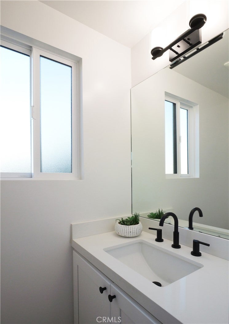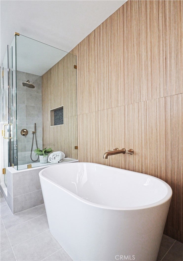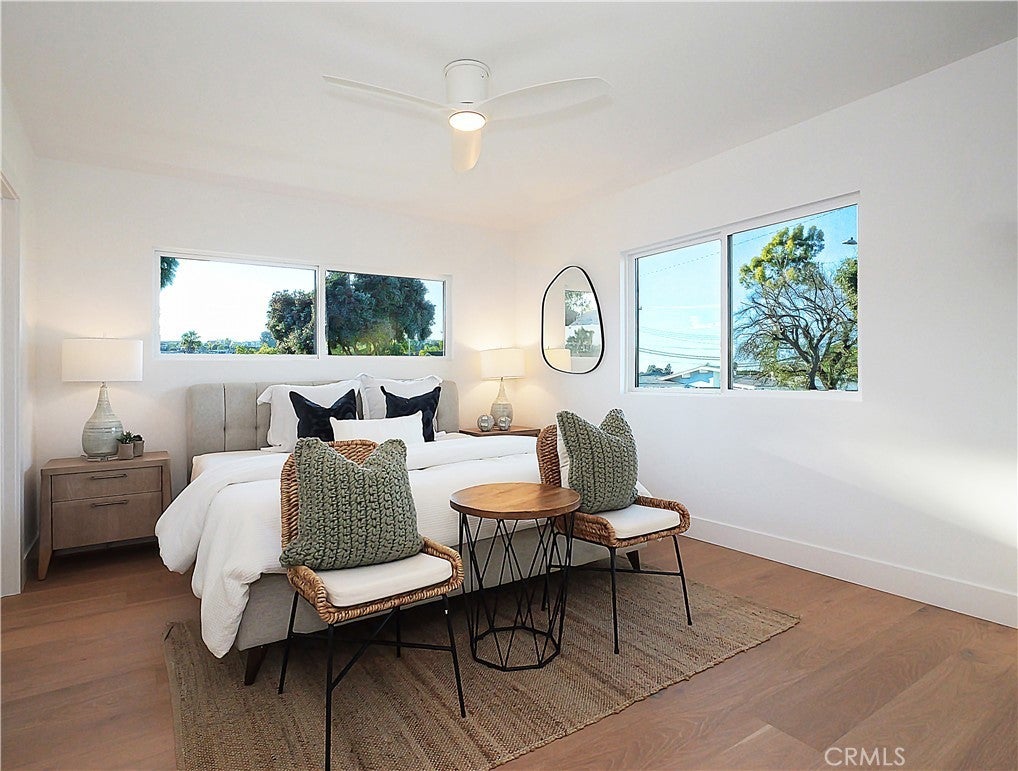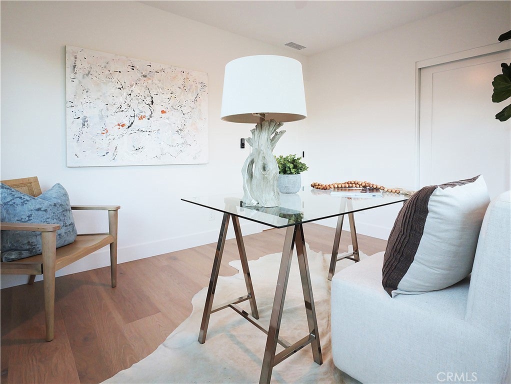 Thoughtfully reimagined with a refined contemporary sensibility, this beautifully remodeled residence offers an exceptional blend of modern design, everyday functionality, and long-term flexibility, set on a prominent corner lot in Rancho Palos Verdes. The single-level main home features four well-appointed bedrooms and two full bathrooms, designed to support both growing families and those seeking effortless, stair-free living. A light-filled open floor plan creates a natural flow between spaces, anchored by a striking marble fireplace framed by a custom slatted feature wall—an architectural focal point that adds warmth and sophistication to the living area. Wide-plank white oak flooring runs throughout, complementing the home’s clean lines and cohesive palette. The dining area overlooks the enclosed backyard, offering a seamless connection between indoor and outdoor living; ideal for both daily life and entertaining. At the heart of the home, the kitchen reflects a no-expense-spared approach, combining form and function with elevated style. A striking split-tone design pairs a wall of crisp white cabinetry with a white oak island, topped in dramatic black marble countertops. High-end appliances, including an undercounter microwave drawer, complete a space designed for both beauty and performance. The primary suite serves as a private retreat, featuring a bold black-and-white palette, contemporary lighting and fixtures, and a spa-inspired bathroom with a freestanding soaking tub—a serene space to unwind at the end of the day. Throughout the home, modern black hardware, lighting, and plumbing fixtures provide a cohesive and polished aesthetic. Enhancing the home’s versatility is a detached bonus living space, complete with a bathroom — ideal as a private home office, guest suite, flex space, or additional bedroom. This rare feature offers exceptional adaptability for today’s evolving lifestyles, from remote work to multigenerational living. Additional highlights include a two-car garage, modern low-maintenance landscaping, an enclosed backyard, and excellent curb appeal that reflects the quality and intention found throughout the home. Designed for how people live today—and how they will live tomorrow—this turnkey property offers a rare combination of architectural style, thoughtful layout, and flexible living in one of Rancho Palos Verdes’ most desirable settings.