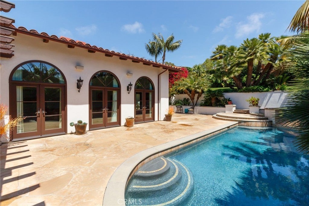 Beautiful 4 bedroom, 3 1/2 bath home across the street from the Palos Verdes cliffs with views of the ocean and coast. Private in-home office with built-in bookshelves and cabinets; two fireplaces, built-in wet bar, large master suite with walk-in closet and balcony overlooking the front yard and ocean views. Chef's kitchen with large working island with utility sink, stainless steel appliances and 6-burner range with a built-in grill. The large family room off the kitchen has vaulted ceilings and French doors leading out to the saltwater pool and jacuzzi. Private and secluded upper backyard with large grassy area perfect for entertaining and outdoor dining. This gorgeous luxury home is conveniently located in lower Lunada Bay near Palos Verdes High School.