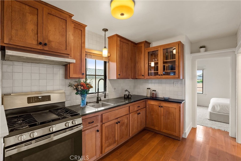 Welcome to 6072 Delphi Street! This Highland Park bungalow is full of character and sits on an expansive lot with lush landscaping. An added bonus is the detached garage nestled in the backyard garden that offers a blank canvas for extra space among the lemon and orange trees. Set on a hill and flooded with natural light, the 1-bedroom, 1-bath home blends vintage details with contemporary updates, from the cozy front porch and stained glass to modern appliances, including a Fotile top-load dishwasher. There are charming doors and window shades, plus an array of built-ins to maximize space – such as the dining nook off the kitchen and a recently converted pocket office. The primary bedroom boasts a stunning view of the surrounding hills. A basement features a washer, dryer and additional storage space. Located in the Highland Park neighborhood of Los Angeles, this home is within a short drive to two of the area’s most vibrant restaurant and shopping corridors on York Boulevard and Figueroa Street.