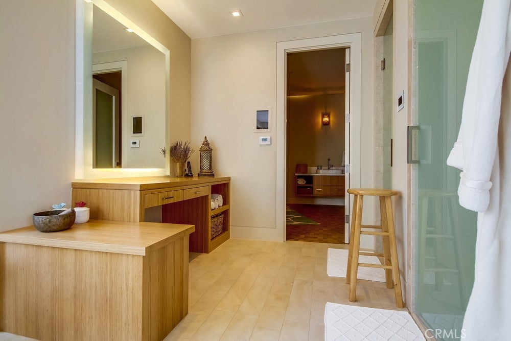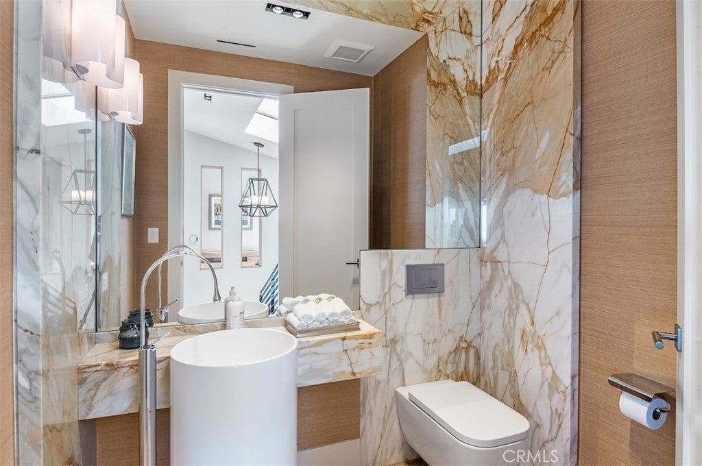 38 Saddleback in Rolling Hills is an architectural triumph, a 9,400-square-foot Contemporary Ranch nestled on a sprawling 54,732-square-foot lot. Designed by Criss Gunderson with inspiration from Cliff May, the estate’s positioning was guided by two Feng Shui masters to ensure a perfect harmony with its environment. This intentionality is matched by an uncompromising commitment to natural materials, featuring Italian Limestone floors, handmade oak and walnut doors with Rocky Mountain hardware, and the same Hope steel doors found at the Getty Museum. The home offers a dual-kitchen experience designed by Cooper Pacific of Beverly Hills: a sleek contemporary kitchen equipped with Gaggenau and Miele appliances and a "Entertainment Kitchen" featuring a handmade La Cornue stove, a Wood Stone pizza oven, and 150-year-old reclaimed barn beams. For the entertainer, the dining room is anchored by a Lindsey Adelman chandelier, while the lower level reveals a Cinema de Cuore theater with custom Fortress seating and a wine cellar constructed from recycled French castle stones and wine-barrel wood. The residence functions as a private sanctuary, offering five bedrooms and nine bathrooms outfitted with elite fixtures from Gessi, Graff, and Axor. The primary suite is a masterclass in luxury, boasting pure white marble walls and Calacata floors. Wellness is central to the design, with a comprehensive spa including an all-cedar dry sauna, steam room with rain shower, massage room, and a soaking tub that transitions to an outdoor shower. Modern convenience is integrated through a laundry chute, a dumbwaiter, and a dedicated library/office located in a separate barn to preserve the sanctity of family life. Outside, the property captures 270-degree panoramic views stretching from Malibu through Los Angeles all the way to Long Beach Harbor, creating an organic flow between the high-design interiors and the breathtaking landscape. This is a home built with conviction, prioritizing craftsmanship, history, and the simple joy of a life well-lived.