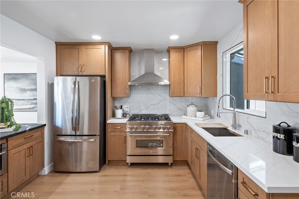 Located in the highly sought after Palisades neighborhood of San Pedro, this fully remodeled 4 bedroom, 3 full bathroom home offers stunning ocean and Catalina Island views with a layout designed for comfortable living. Perched high above the street level, the entry is lined with stylish custom wood panels and opens to the dining room with fireplace and gourmet kitchen. The kitchen features a beautiful wide open island, new cabinetry, porcelain backsplash, stainless steel appliances including ZLINE stove/microwave, wine cooler, bar area, and other custom touches! The main level also features 2 bedrooms and a fully remodeled bath. Step out to the spacious backyard, which was fully recreated with new concrete, grass, landscaping, and a gazebo perfect for entertaining. The upper level is where the views really hit! Large living room with multiple windows facing the ocean and a balcony with additional outdoor space. This level also features a designated laundry room, remodeled guest bathroom and a primary ensuite that is straight out a designer magazine! Considerable closet space along with additional walk in closet, full bath and views of Catalina from the primary bedroom. Some of the many other features include new white oak solid-core doors with coordinating black hardware, new timberline charcoal cool roof, custom closets, vinyl flooring throughout, 50 gallon water heater, recessed and custom lighting, fresh exterior/interior paint, 240v electrical panel, etc. The oversized 3 car garage is equipped for EV charging and provides plenty of parking, storage, and basement area that can be used for additional storage space. Additional driveway space next to garage provides opportunity for potential boat, toy, and vehicle parking. Bright, open living spaces create an ideal environment for both everyday living and family gatherings, while the home’s elevated setting delivers cool ocean breezes and unforgettable sunset views. The flexible floor plan allows room for growing families, guests, or a home office. Located just one block from historic Paseo Del Mar and a short stroll to the neighborhood Corner Store, Pt. Fermin Lighthouse, nature preserve, walking trails, and the iconic Korean Bell. Pack your bags and move right in!