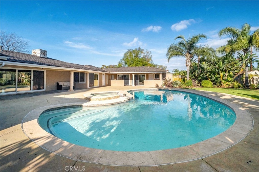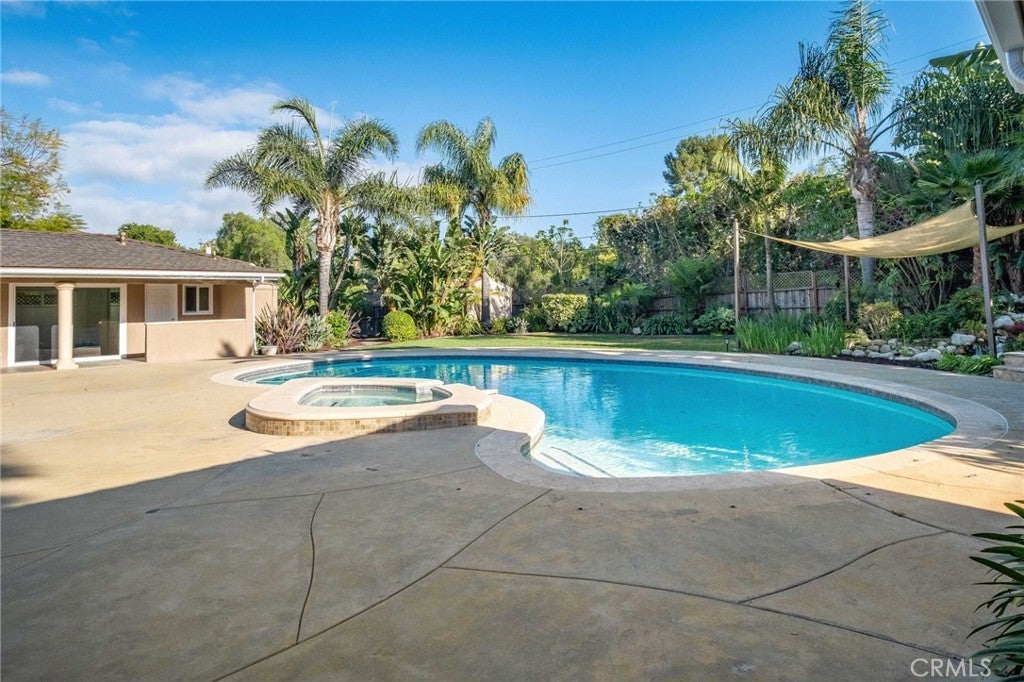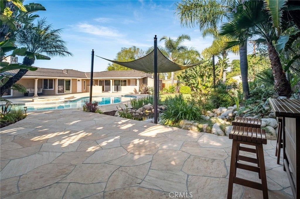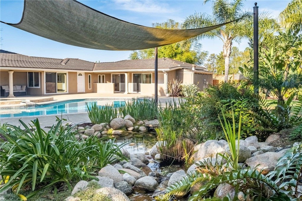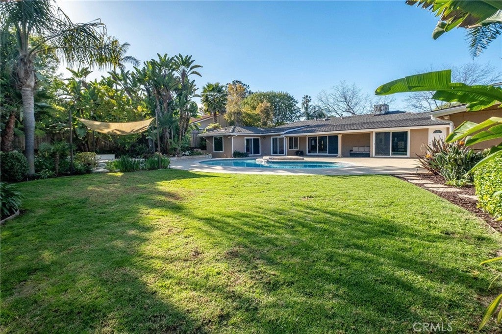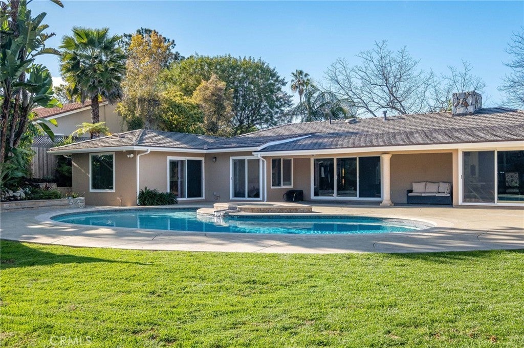 Welcome to an exceptional opportunity in the heart of Rolling Hills Estates, a stunning private oasis at 4 Silverleaf offering the best of Palos Verdes luxury real estate. This beautifully designed single-level estate features 4 bedrooms, 4.5 bathrooms, and approximately 3,369 sq ft of living space on an expansive 17,917 sq ft lot, perfectly blending elegance, comfort, and seamless indoor-outdoor living. Designed for both relaxation and entertaining, this luxury home in Rolling Hills Estates showcases an ideal open floor plan with a spacious family room that flows effortlessly to the resort-style backyard. Step outside to your own retreat featuring a sparkling pool, hot tub, and expansive patio areas, perfect for hosting gatherings or enjoying peaceful afternoons surrounded by lush greenery. Multiple outdoor sitting areas, including a tranquil fountain with waterfall, create a serene ambiance rarely found in Rolling Hills Estates homes for sale. Inside, the home is highlighted by beautiful hardwood floors, multiple fireplaces, and a warm, inviting atmosphere throughout. The gourmet kitchen features granite countertops, a center island, and an indoor BBQ—ideal for entertaining year-round. The thoughtful layout offers multiple living and sitting areas, maximizing both space and comfort while capturing peaceful garden views from nearly every room. The spacious primary suite serves as a private retreat, complete with a large walk-in closet and a luxurious bathroom featuring both a soaking tub and separate shower. Additional highlights include ample storage, generously sized secondary bedrooms, and well-appointed bathrooms throughout. Ample room to add an ADU in the yard, ask for plans. Located in a highly desirable and tranquil neighborhood, this property offers rare privacy with direct adjacency to the open green space of Chandler Park, including access to a grass area and horse riding ring. Enjoy close proximity to scenic horse trails and walking paths that make Palos Verdes Peninsula real estate so sought-after. This is a rare chance to own a luxury estate in Rolling Hills Estates that combines space, privacy, and an incredible indoor-outdoor lifestyle, perfect for those seeking the finest in Southern California living.