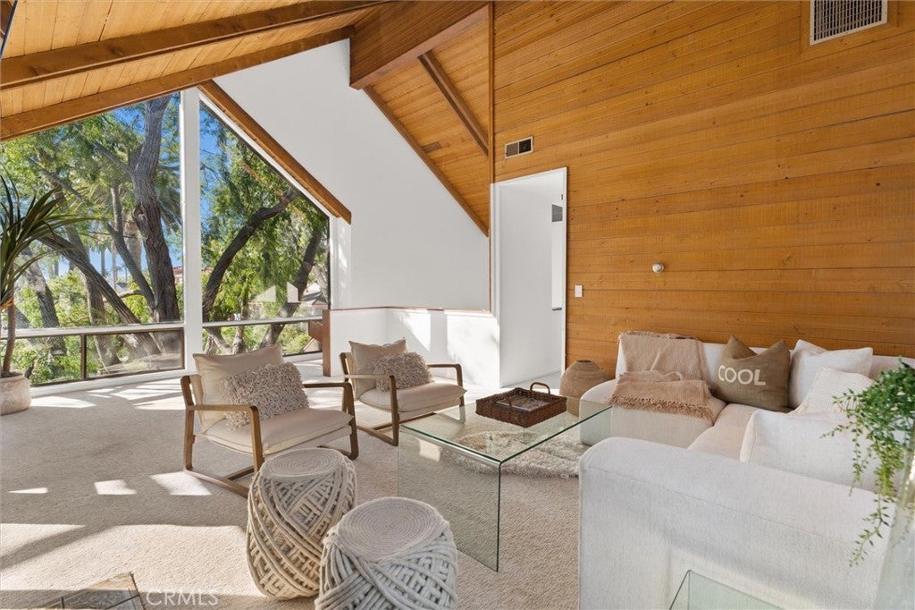 Slow down, you move too fast… You got to make the morning last! You’ll be “feeling groovy” in this hip and modern 1970’s vintage seaside retreat! Sitting stately on the corner of Barbara and Paseo Del Mar, in a location that can’t be beat, this “really cool” home is ready for its new owner! Wide stairs lead to a grand double door entry. As you step inside, the soaring ceilings will draw your eyes upstairs where you’ll find floor-to-ceiling windows showcasing the amazing, unobstructed ocean view! Beautiful, vaulted wood ceilings create a warm, rustic feel. Cozy up to the wood clad fireplace, grab a coffee and a book and settle in! A large veranda off the living room offers an amazing ocean view, and an opportunity to chat with your neighbors or watch the peacocks stroll by. The kitchen and dining room are just off the living room, and open to a large patio/deck, perfect for al fresco dining! Vaulted ceilings and clerestory windows keep the space light and bright! It’s no issue to get your groceries upstairs–there’s a dumbwaiter to carry them up for you! A power room completes the upper level. Downstairs, a spacious primary suite is bathed in natural light. Imagine lifting your head off the pillow, peeking through mature trees and seeing the ocean right in front of you! A spacious en-suite bathroom features a double vanity and tub/shower combo. Storage is not an issue with a very generous walk-in closet and a wall closet as well! A second bedroom faces the lush green and private yard area shaded by mature trees and offering several seating/patio areas for you to entertain and lots of room for recreation and play! If you’re working at home, a dedicated den/home office space also overlooks a private courtyard off the home’s front entry. A second full bath is also on this floor where the laundry is also neatly tucked away. There is an oversized 2-car garage with workbench space, as well an an additional storage shed. This one-of-a-kind home offers 1840 square feet of living space on a spacious 5700 square foot lot. Head up the block to The Corner Store or stroll along the ocean to Point Fermin Park. You’re also just a short jaunt to the Korean Friendship Bell and the White Point Nature Preserve. If you love to be outdoors, you won’t find a better spot than this! Be a part of the renaissance of San Pedro with its upcoming West Harbor development with new restaurants, shops and more, but where you can still relish the quaintness of our little seaside town!