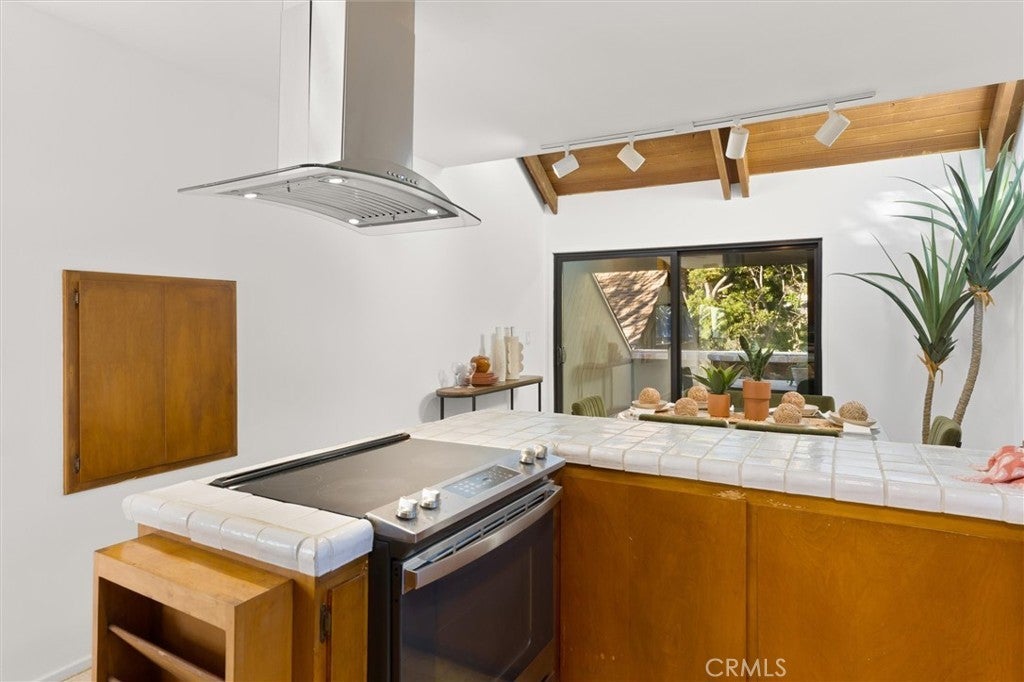 • Interior FeaturesBreakfast Bar, Balcony, Cathedral Ceiling(s), Separate/Formal Dining Room, High Ceilings, All Bedrooms Down, Main Level Primary, Primary Suite, Walk-In Closet(s), Beamed Ceilings, Ceramic Counters, Dumbwaiter, Track Lighting, Wood Product Walls