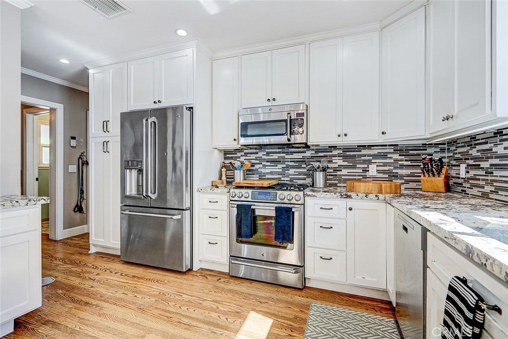 Welcome to this beautifully remodeled single level home in a sought-after Hollywood Riviera neighborhood. Thoughtfully updated and full of charm, this home is ideal for everyday living and easy entertaining. A charming Dutch front door welcomes you inside to a bright, open-concept layout featuring refinished oak hardwood floors, recessed lighting, and abundant natural light. The remodeled kitchen is both stylish and functional, with white shaker cabinetry, granite countertops, stainless steel appliances, and generous counter space for gathering with family and friends. The kitchen flows seamlessly into the dining and living areas, creating a warm and connected heart of the home. A sliding barn door adds both style and flexibility, separating the living space from the bedroom wing for added privacy. All three bedrooms have recessed lights, vinyl windows, crown moldings and baseboards. The updated bathrooms offer clean, modern finishes. Step outside through sliding glass doors to a private backyard designed for enjoying Southern California living. With paver hardscape, a grassy area, and mature landscaping, it’s the perfect space for kids to play, weekend barbecues, or relaxing evenings outdoors. The attached garage has been thoughtfully refinished with recessed lighting and includes a pull-down ladder leading to generous attic storage—ideal for keeping things organized. Located within walking distance to Richardson Middle School, as well as nearby shops and dining, this home offers the perfect blend of convenience, comfort, and community.