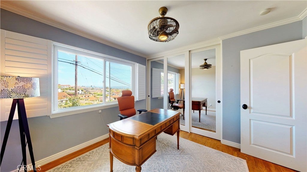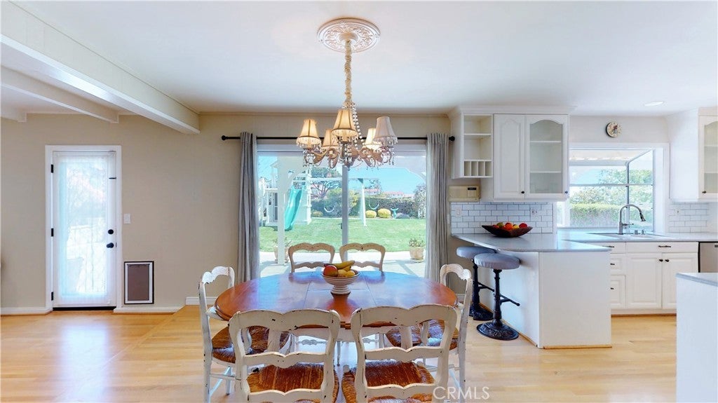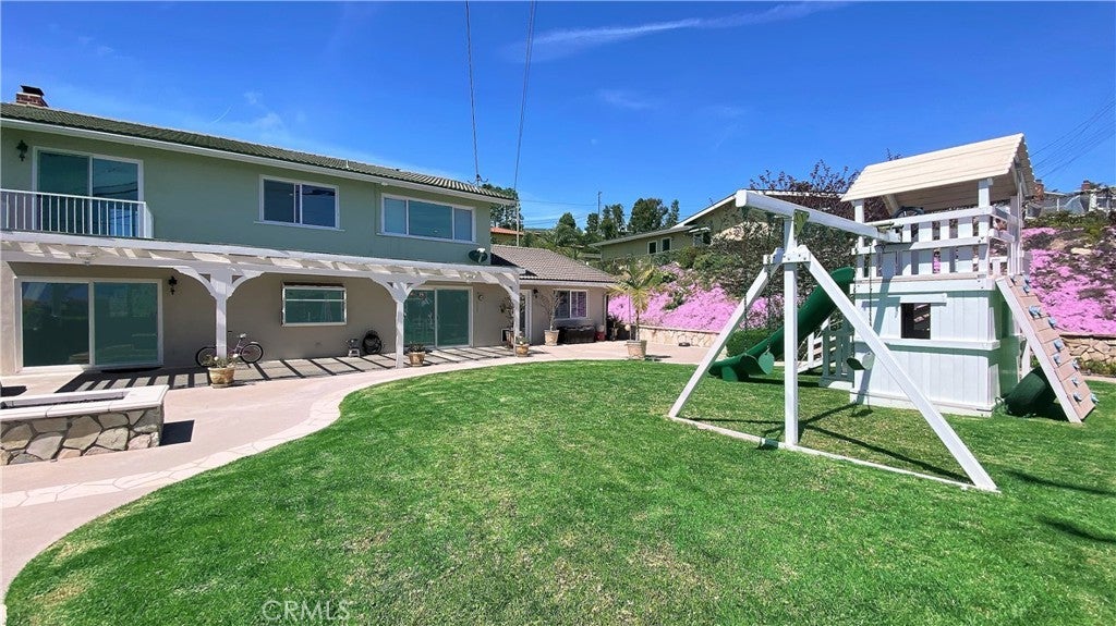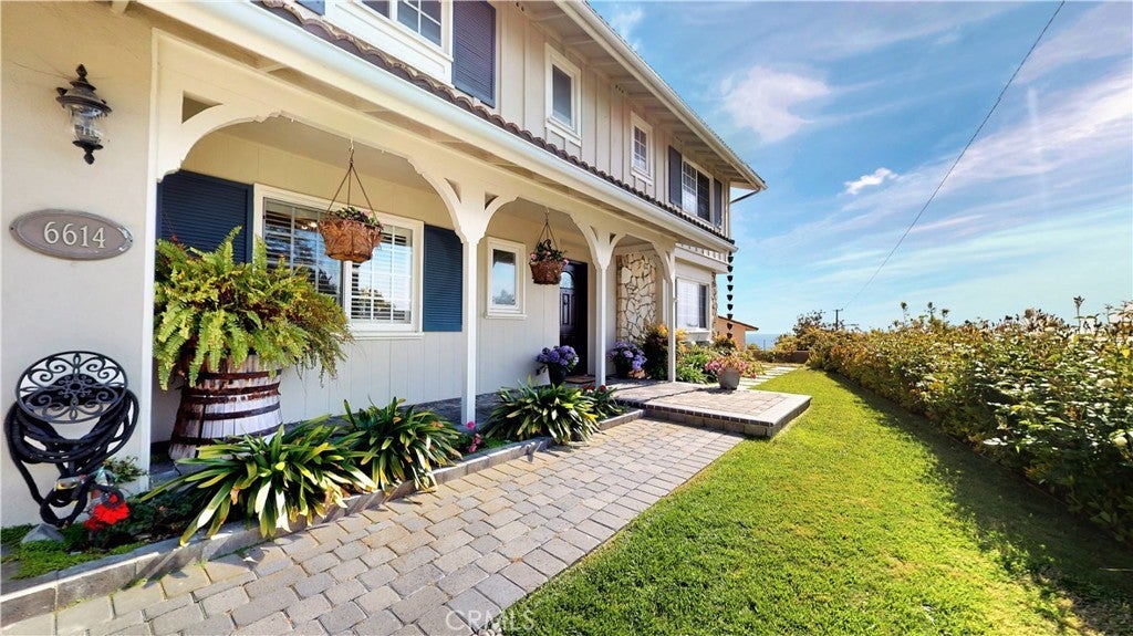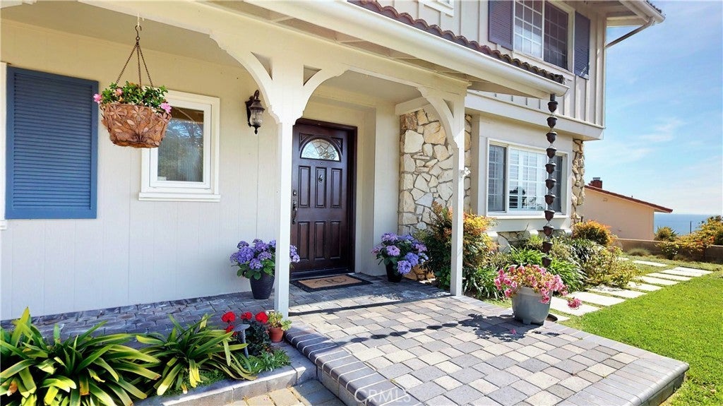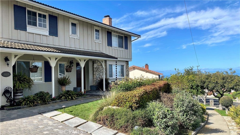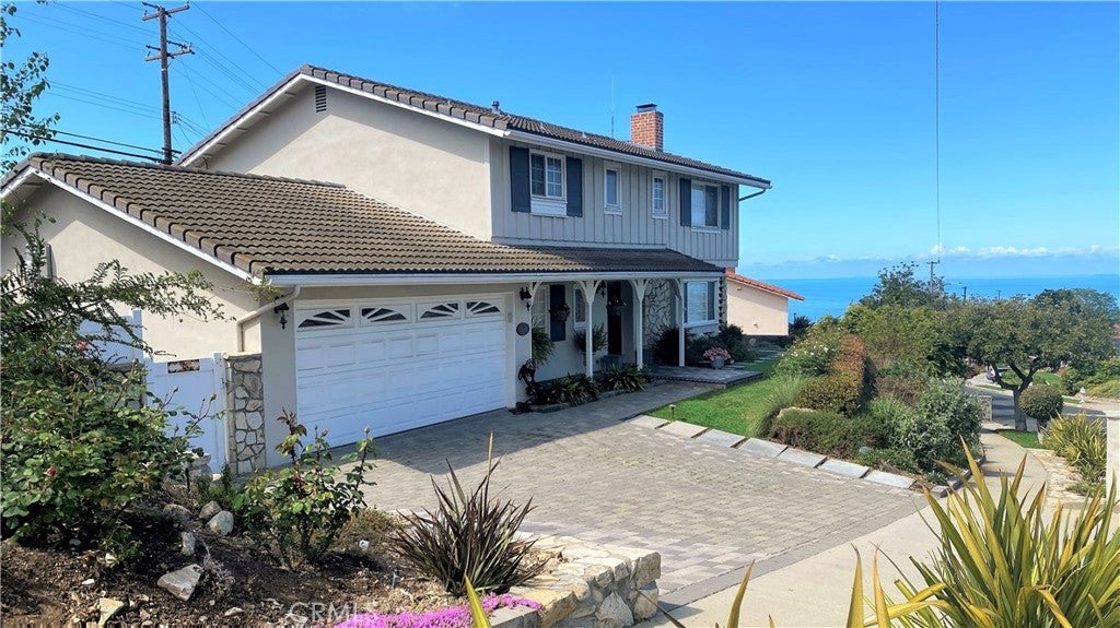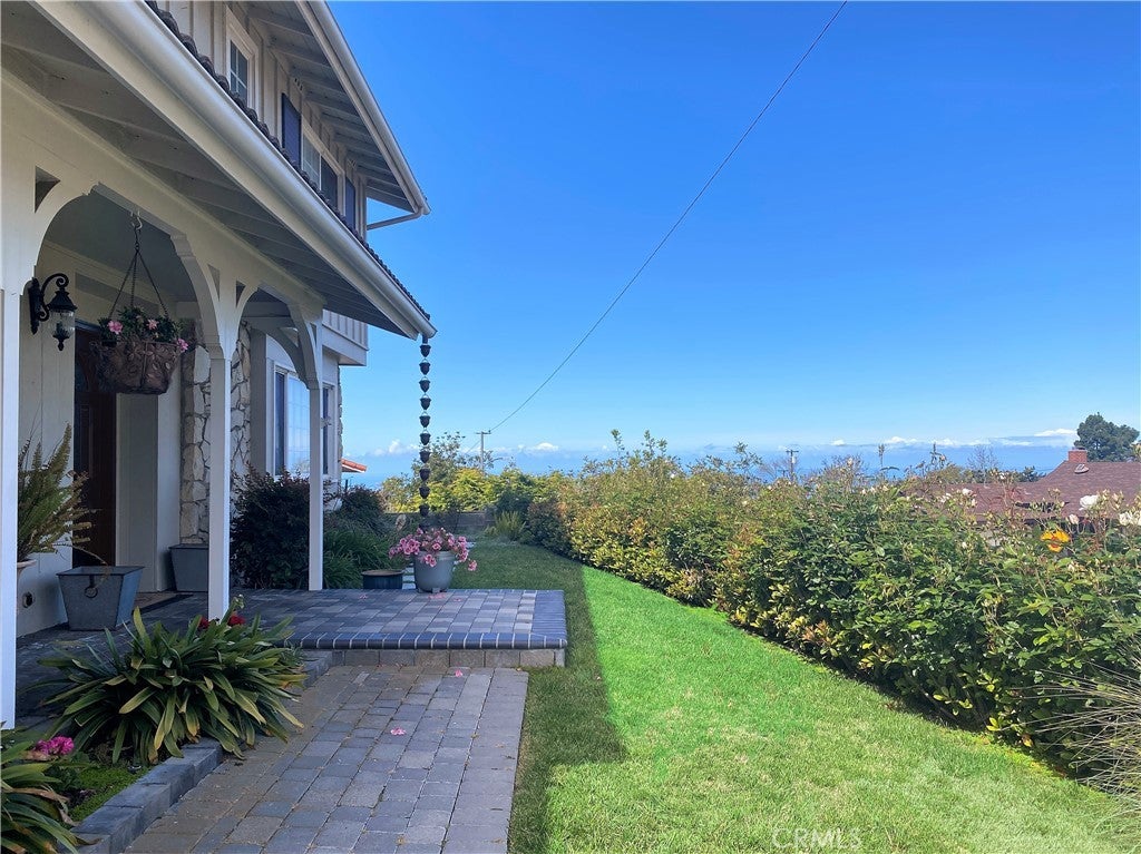 Timeless Los Verdes home with ocean views, classic character, and thoughtful upgrades throughout. Set near the top of the neighborhood on one of the highest plateaus originally selected by noted Beverly Hills developer Barney R. Morris, this cherished two-story traditional residence captures beautiful views of Catalina Island and the Pacific coastline. Proudly offered by only its third owner, this 5-bedroom, 3-bath home blends warmth, function, and an exceptional lifestyle location. A welcoming formal entry opens to a gracious living room with wood floors and an elegant fireplace, while the formal dining room is ideal for hosting family and friends. Large sliding glass doors connect the interior living spaces to the lush backyard, creating effortless indoor-outdoor flow. The spacious kitchen is equipped with quality appliances including a Fisher & Paykel dishwasher, KitchenAid microwave and stovetop, and refrigerator. A main-level bedroom suite with adjoining bath offers flexibility for guests, extended family, or a home office. Upstairs, four additional bedrooms and two remodeled baths enjoy beautiful ocean views. Recent improvements include Pella windows and sliding doors, updated plumbing, tankless water heater, custom closets throughout, newer carpet, and remodeled upstairs and downstairs baths. Designer touches such as Schonbek light fixtures add elegance and sophistication. The private backyard is a true retreat with a flat grassy play area, manicured gardens, covered dining area, fire pit, and a custom playset. Additional features include a concrete tile roof, new irrigation and drainage system, and attached 2-car garage. Located in the top-ranked Palos Verdes Unified School District, and just a short stroll to Vista Grande Elementary and Hesse Park, this home also enjoys a prime location minutes from shopping, grocery stores, and restaurants. A rare opportunity to own a special home in one of Palos Verdes’ most desirable neighborhoods.