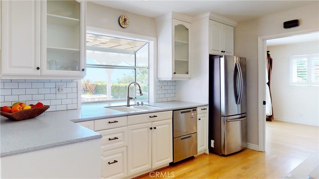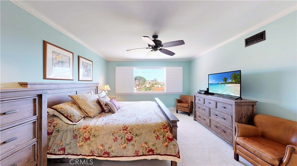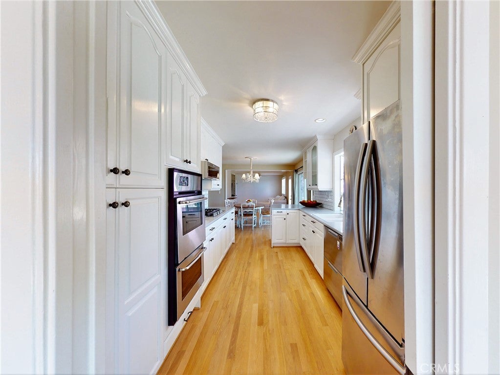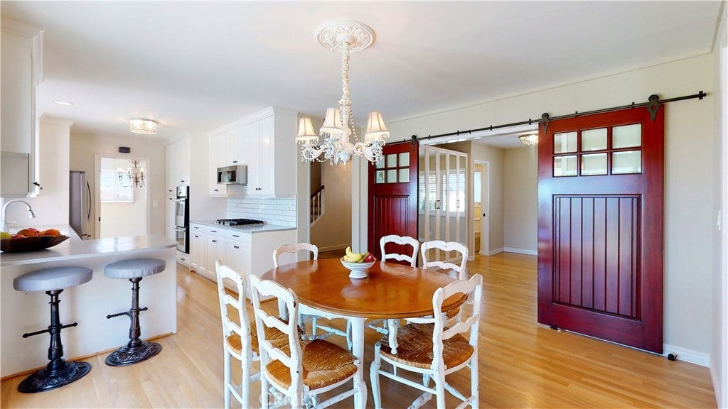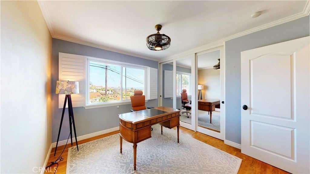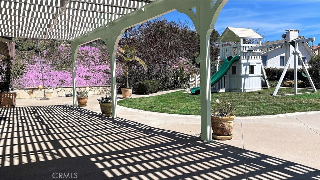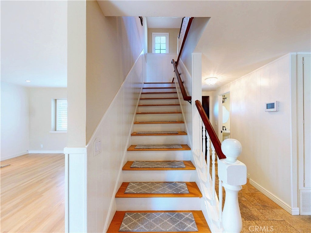 Timeless Los Verdes home with ocean views, classic character, and thoughtful upgrades throughout. Set near the top of the neighborhood on one of the highest plateaus originally selected by noted Beverly Hills developer Barney R. Morris, this cherished two-story traditional residence captures beautiful views of Catalina Island and the Pacific coastline. Proudly offered by only its third owner, this 5-bedroom, 3-bath home blends warmth, function, and an exceptional lifestyle location. A welcoming formal entry opens to a gracious living room with wood floors and an elegant fireplace, while the formal dining room is ideal for hosting family and friends. Large sliding glass doors connect the interior living spaces to the lush backyard, creating effortless indoor-outdoor flow. The spacious kitchen is equipped with quality appliances including a Fisher & Paykel dishwasher, KitchenAid microwave and stovetop, and refrigerator. A main-level bedroom suite with adjoining bath offers flexibility for guests, extended family, or a home office. Upstairs, four additional bedrooms and two remodeled baths enjoy beautiful ocean views. Recent improvements include Pella windows and sliding doors, updated plumbing, tankless water heater, custom closets throughout, newer carpet, and remodeled upstairs and downstairs baths. Designer touches such as Schonbek light fixtures add elegance and sophistication. The private backyard is a true retreat with a flat grassy play area, manicured gardens, covered dining area, fire pit, and a custom playset. Additional features include a concrete tile roof, new irrigation and drainage system, and attached 2-car garage. Located in the top-ranked Palos Verdes Unified School District, and just a short stroll to Vista Grande Elementary and Hesse Park, this home also enjoys a prime location minutes from shopping, grocery stores, and restaurants. A rare opportunity to own a special home in one of Palos Verdes’ most desirable neighborhoods.