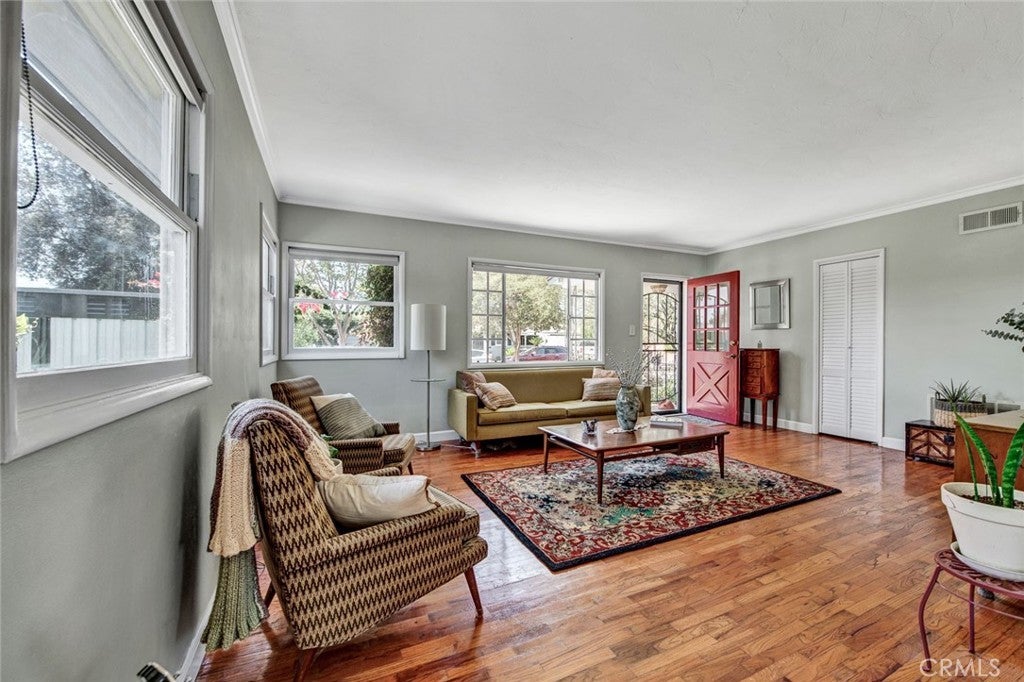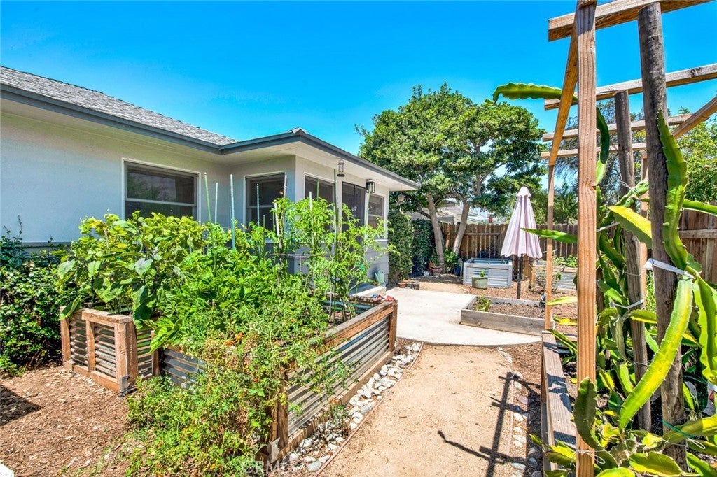 This corner ranch-style house is situated in the desirable Washington Square neighborhood, surrounded by an award-winning, water-friendly California xeriscape. The location has little car traffic, ideal for families with children, minimal contact with neighboring houses and has immense potential for the avid gardener. Arrive home from a busy workday and you are surrounded by nature, the song of birds and the wisp of butterflies, relax and observe the natural cyclical changes of fruit trees and plants that offer color and texture. The vegetable garden has five raised beds to build an edible canvas to your taste and the fruit trees offer their bounty year-round, ideal for canning or crop sharing. Inside, you will find an abundance of lovingly restored, original double-hung windows that allow light to showcase the newly refurbished hardwood floors. Four doors, located at cardinal points, allow for access to individual gardens and for airflow to bring the fresh ocean breeze in late afternoons. The two bedrooms are spacious with generous closet space and plenty of windows to bring in light and a view of the bustling green outside. The kitchen boasts a stove and cabinets, built at a time when things were made to last, restored and well maintained through the years. Finally, you will live in the unique community of Washington Square, the best-kept secret in Orange County. You will be embraced by the kindest neighbors, and will connect through the year-round get togethers from wine walks to chili cook-offs, progressive dinners and October fests. Here, you can make lifelong friendships and bonds.