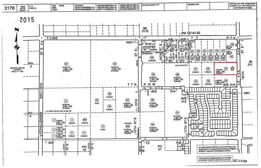 Excellent 4.57 Acre home site! residential builder's lot zoned for 7000 sq ft lots. Existing homes in the street, Paved frontage 20th St E, located South of Ave H, Great location, very close to shopping, Schools, park, and freeway access. GPS: 34.716891, -118.095203 (NE Corner), Land size: 600’ x 332’