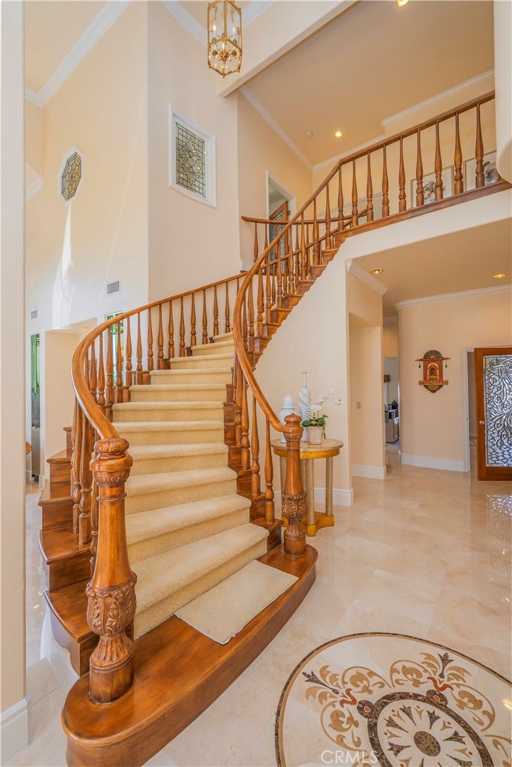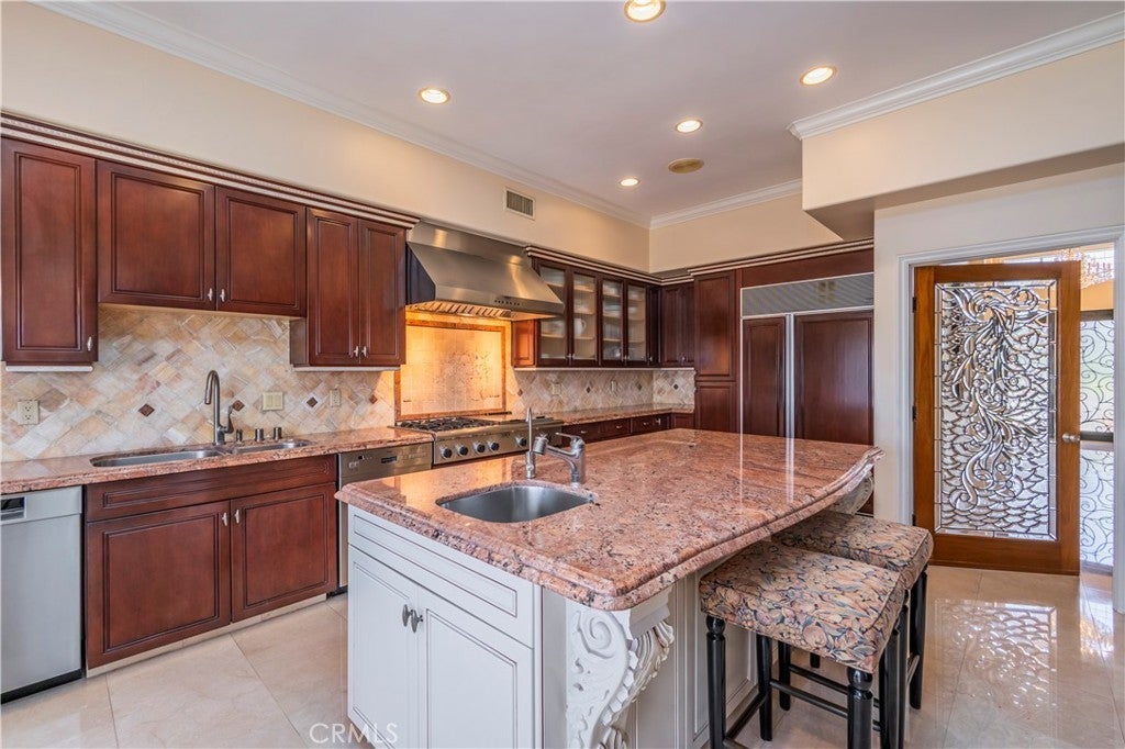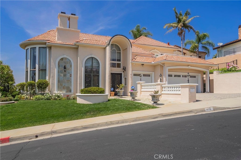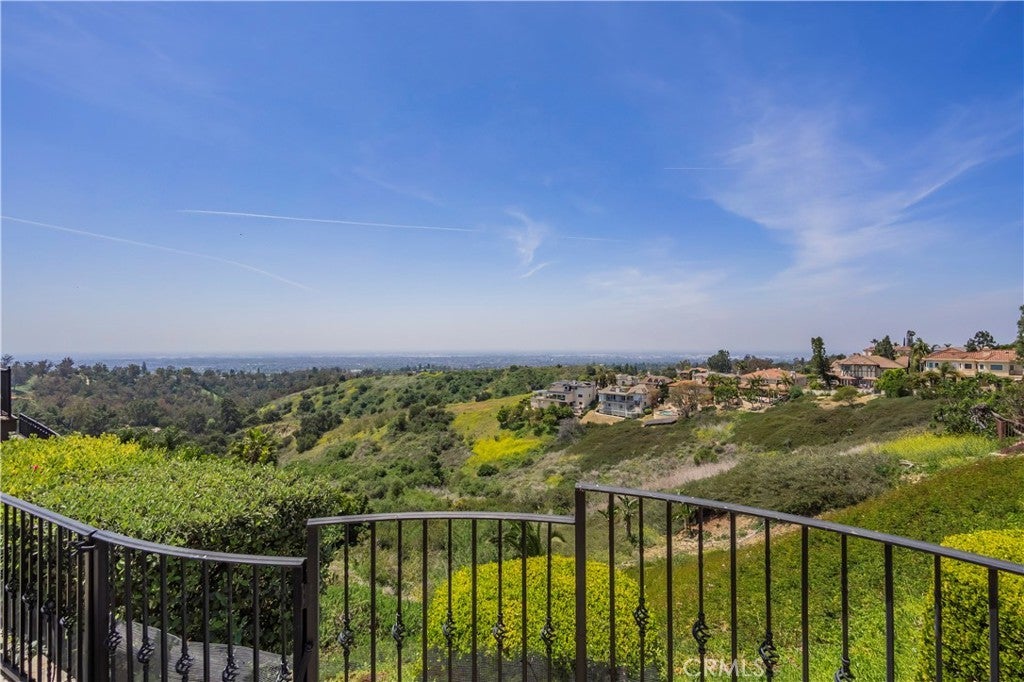 Welcome to 8113 Newcastle Drive, a masterpiece of sophistication and tranquility nestled within the prestigious 24-hour gated enclave of Friendly Hills Estates. This stunning custom-built residence offers breathtaking vistas that stretch from the glittering city lights to the serene beauty of Catalina Island, the majestic Palos Verdes Peninsula, and even the Ocean Rim on a clear day—all from the privacy of your backyard. With 4,730 square feet of living space set on a generous 20,816 square-foot lot, this home is truly a masterpiece. Step into grandeur as you enter a home defined by soaring ceilings and exquisite craftsmanship throughout. The spacious gourmet kitchen is a haven for culinary enthusiasts, featuring high-end built-in appliances, a Sub-Zero refrigerator, water chiller, wine fridge, two pantries, and a center island—all paired with an adjoining eating area that frames mesmerizing views. The formal living room invites you to gather amidst its lofty ceilings, marble flooring, elegant drapery, and granite fireplace, while the family room delivers equal charm with its panoramic city and ocean views, granite fireplace, and access to a balcony leading to the backyard. Downstairs, two guest bedrooms with private bathrooms offer comfort and privacy. Ascend the custom-made curved wood staircase to find an inviting library and luxurious upstairs bedrooms—all complete with private balconies and ensuite bathrooms adorned with marble flooring and granite countertops. The master suite indulges with a lavish bathroom, including a jacuzzi tub, separate shower, double sinks, and walk-in closet. The backyard is a true oasis, boasting unobstructed views, a sparkling pool with a waterfall, built-in fireplace, barbecue, sink, fruit trees, and a dedicated space to plant your own vegetables. A three-car garage offers ample storage. Just minutes away from Friendly Hills Country Club, offering an array of world-class amenities, including a championship golf course, and much more. This extraordinary home embodies elegance, comfort, and luxury in one of the most coveted locations. Don’t miss the chance to experience unparalleled living—welcome to your new sanctuary!