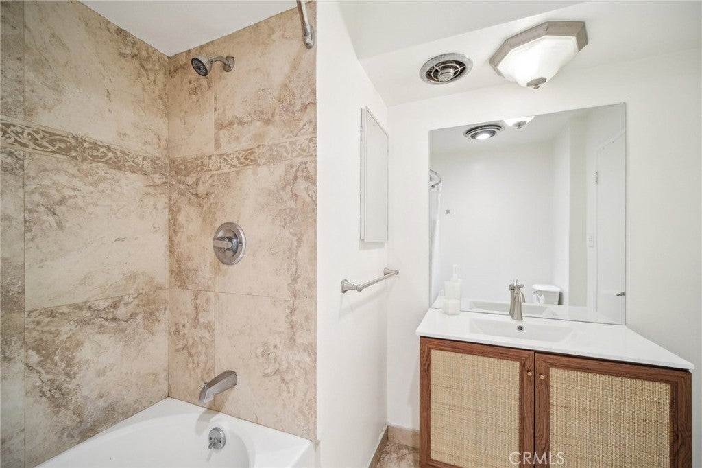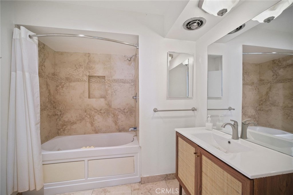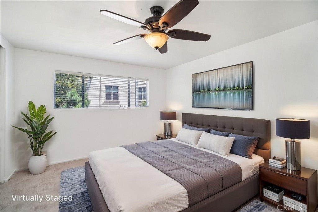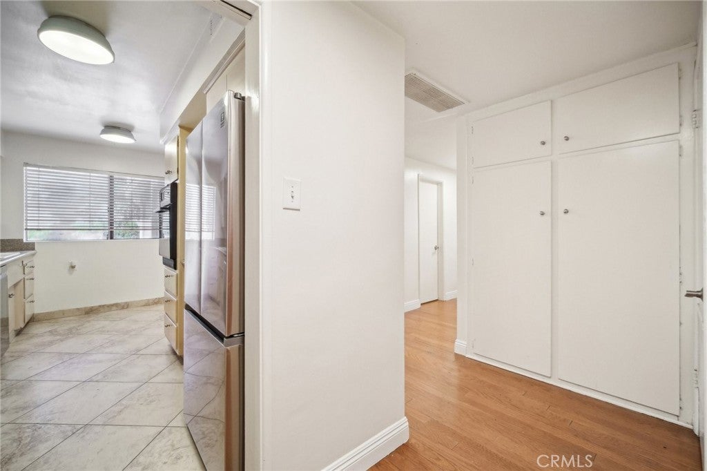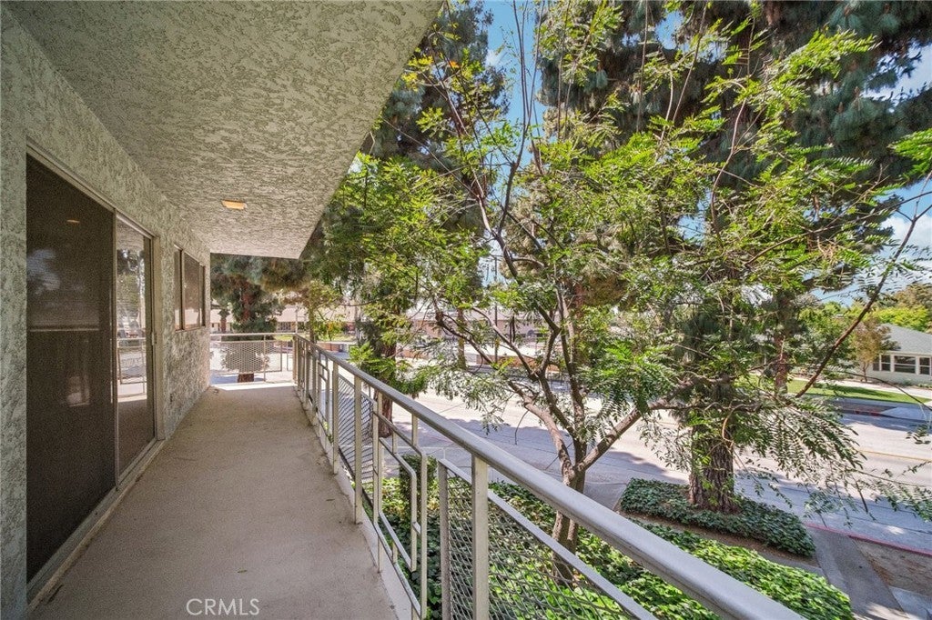 Welcome to Whittier Beverly Park, where timeless Mid-Century Modern design meets spacious comfort. This beautifully maintained 2-bedroom, 2-bath condo offers 1,403 square feet of stylish, open living space in one of Whittier’s most desirable communities.Step into a grand entryway that flows seamlessly into an expansive living room, featuring oversized windows and a large sliding glass door that opens to a generous and private balcony—perfect for relaxing or entertaining while enjoying tree-lined views. The well-designed floorplan includes a dedicated dining area just off the living room, adjacent to a sleek galley-style kitchen complete with granite countertops, modern appliances, and ample cabinet storage for everyday convenience. Down the hallway, you'll find a spacious guest bedroom with a large closet, as well as a beautifully appointed 3/4 bathroom with tile flooring, a walk-in tiled shower, and an elegant vanity with matching mirror. Across the hall, retreat to the spacious and serene primary suite featuring a full en-suite bathroom with a soaking tub and updated vanity—an absolute must-see. Additional features include a secured gated garage with an oversized assigned parking space (#8), elevator and stair access, and a convenient community laundry room. Enjoy the lush, grassy common area where you can relax under a shady tree or socialize at the patio table with neighbors. Ideally located in the heart of Whittier, this home is just minutes from schools, parks, restaurants, and major freeways—offering both charm and convenience. This is a true showplace of Mid-Century style, ready to welcome its next discerning owner.
