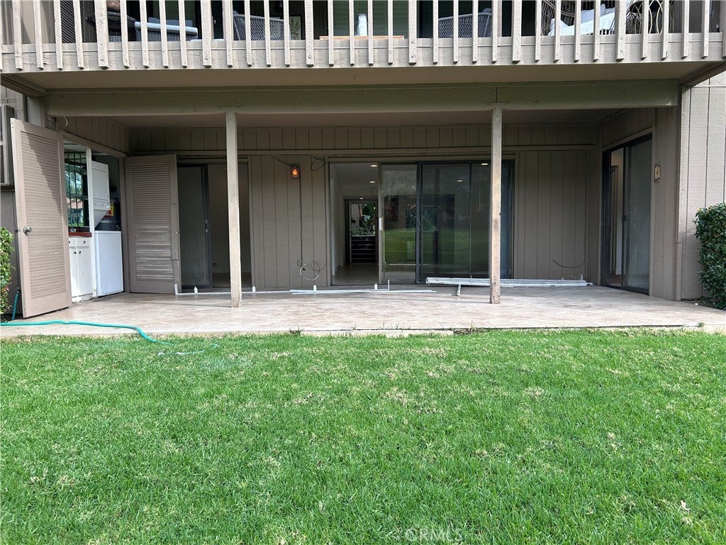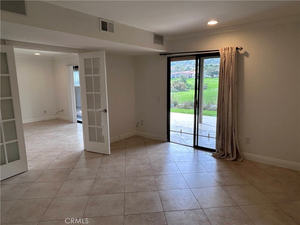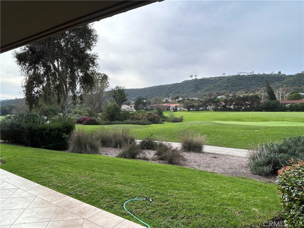 This lower-level end unit condo offers stunning views of the 2nd and 3rd holes of El Niguel Golf Course, with tranquil vistas of the green, fairway activity, and the surrounding valley and hills. Featuring three spacious bedrooms and two baths, the home boasts an open-concept family room that flows into a large patio area complete with a refreshment bar—perfect for relaxing or entertaining. The kitchen showcases oak cabinets with granite countertops, stainless steel appliances including a stove, microwave, and dishwasher, and recessed lighting. Bathrooms feature tiled showers and baths, while the living areas are finished with tile flooring and the bedrooms are carpeted. French interior doors add a touch of elegance throughout. Central air conditioning ensures year-round comfort, and a stackable washer and dryer are included, though their condition is unknown and no warranty is provided. A two car garage is conveniently located nearby, and the community offers beautifully manicured grounds, a pool, BBQs, and picnic tables just steps from the unit. Residents also have the option to join the El Niguel Country Club, Golf Club, Tennis Club, and Swim Club. Located close to beaches, parks, schools, shopping, restaurants, and major freeways, this condo combines peaceful golf course living with everyday convenience. Having been a rental property for several years, the unit presents an excellent opportunity for updates, including fresh paint and new flooring, to restore its full potential. It is being sold in its current "as-is" condition.