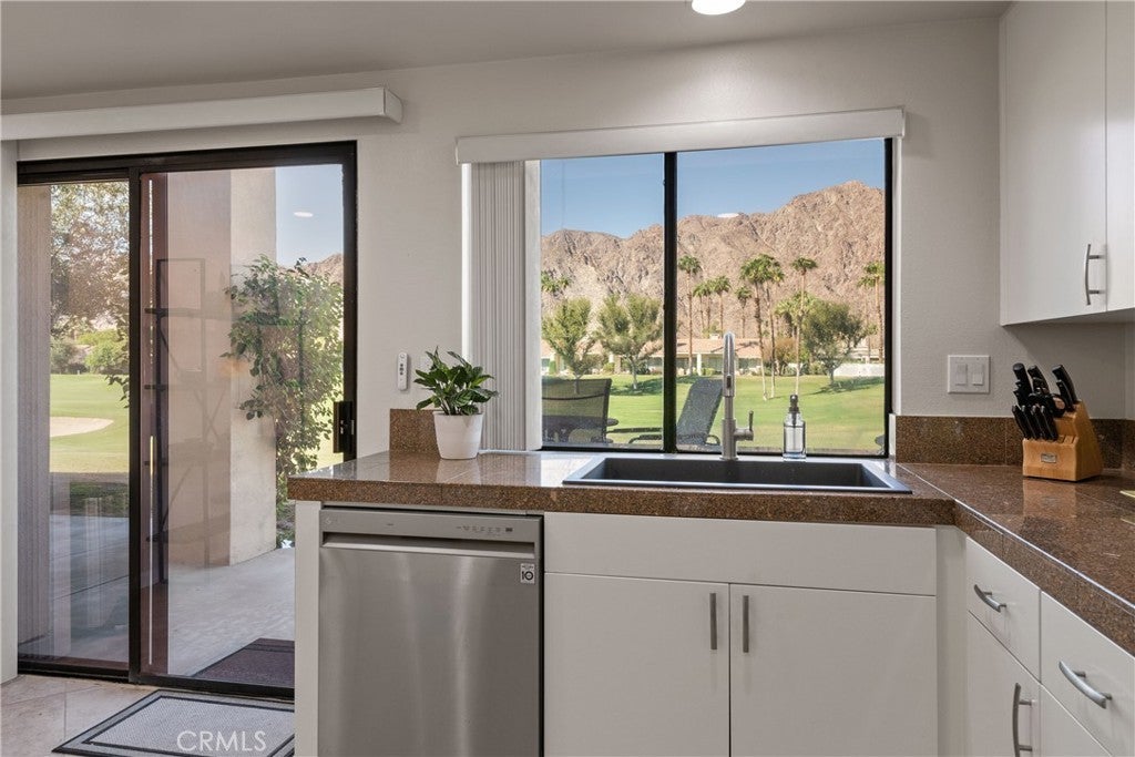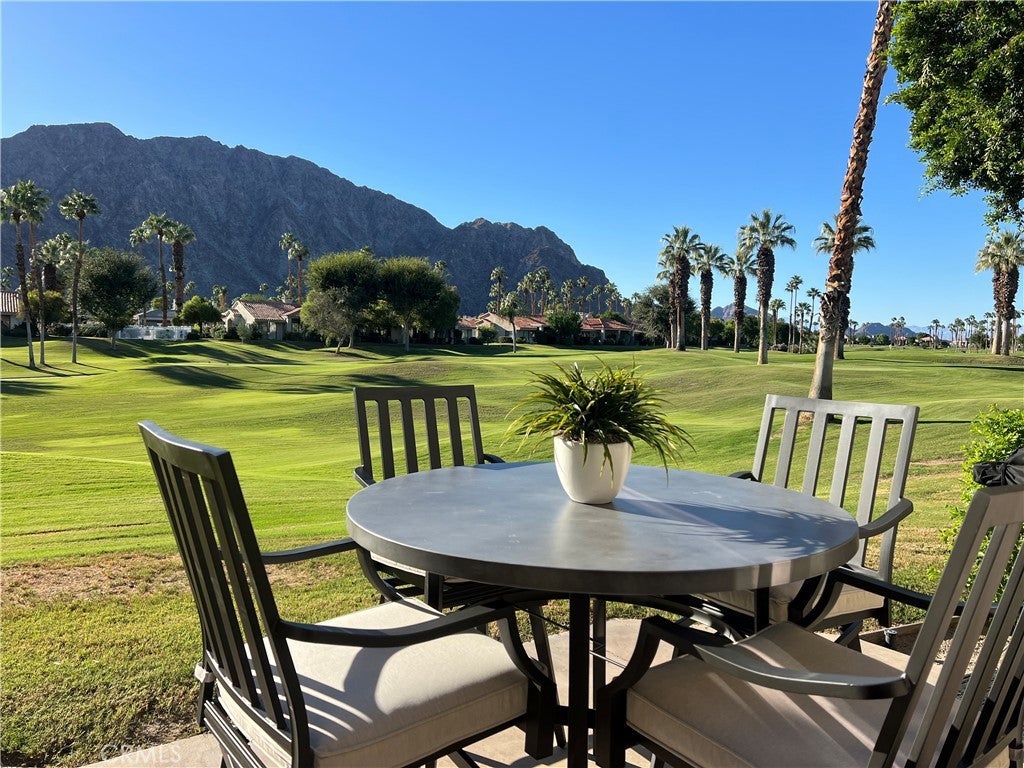 Panoramic West and South views of the Santa Rosa mountains & 8th fairway of the Palmer Private course at PGA WEST. This Champions IV plan is offered furnished. Your La Quinta getaway awaits at this welcoming 3-bedroom condo. Dine on the back patio with the 8th fairway of the Palmer course, and mountains for your view. The patio includes a gas barbecue and lovely gas fire pit table. It’s also a short walk to the community pool less than 60 yards away. The open living room is spacious, with a lovely dining area for your enjoyment. Full amenities like WiFi, Cable TV, Laundry Room. With 3 full bathrooms equipped with hair dryers and showers, your comfort is our priority. This is a 3 bedroom / 3 bath end unit model. However the third bedroom is currently confirgured as an office/den and has a new queen sized fold out couch for guests and perfect for relaxing, watching movies/sports, or reading. Rental is seasonal/month to month. Currently booked Jan - Mar 2027. Oct - Dec has rate of $6,900 per month The month of April will be considered for lease for $9,900 for that month only.