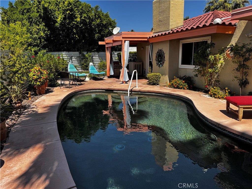 PRICE REDUCTION Discover this Airbnb-ready, fully furnished, turnkey three-bedroom, two-bath home nestled on a peaceful cul-de-sac in the highly desirable Victoria Park/Vista Norte community, just a 5-minute drive from downtown Palm Springs. Perfect for homeowners or investors, this property is ready for short-term rentals with the Vista de Norte neighborhood having only 13.88% short-term rental density, well below the City’s 20% cap, ensuring eligibility for a Vacation Rental Certificate. The inviting family room flows smoothly into the dining area and an open kitchen with a breakfast bar, ideal for entertaining. The main en suite bedroom provides direct backyard access, creating a private retreat. Two spacious secondary bedrooms share a stylishly updated hall bathroom. The backyard is a true oasis, featuring a sparkling pool surrounded by wrap-around metal fencing for privacy and stunning mountain views. The front of the property has a cozy covered porch and professionally designed landscaping, boosting curb appeal. All furniture is included, making this a seamless turnkey opportunity for immediate use or rental income. Key Highlight: The property’s land lease has been extended to 2077, offering long-term value and peace of mind. Don’t miss this rare opportunity to own a fully furnished piece of Palm Springs paradise, ready for personal enjoyment or as a lucrative Airbnb investment! Disclaimer: The information provided in this listing is deemed reliable but not guaranteed. Buyers are advised to conduct their own due diligence and verify all facts related to the property, including short-term rental permitting with the City of Palm Springs.