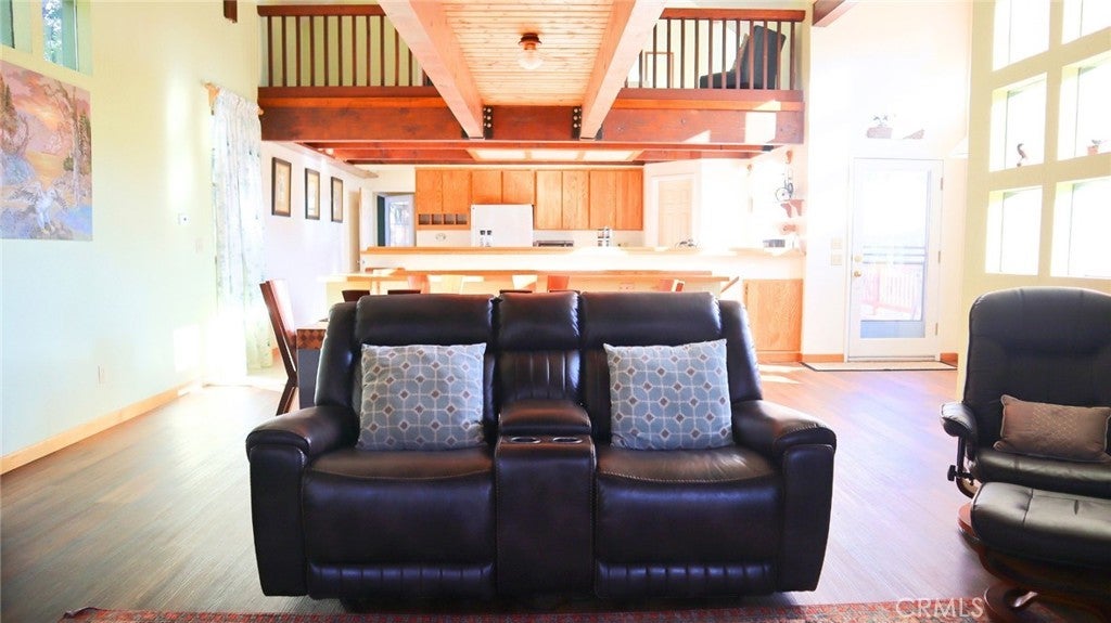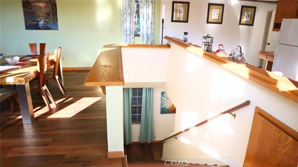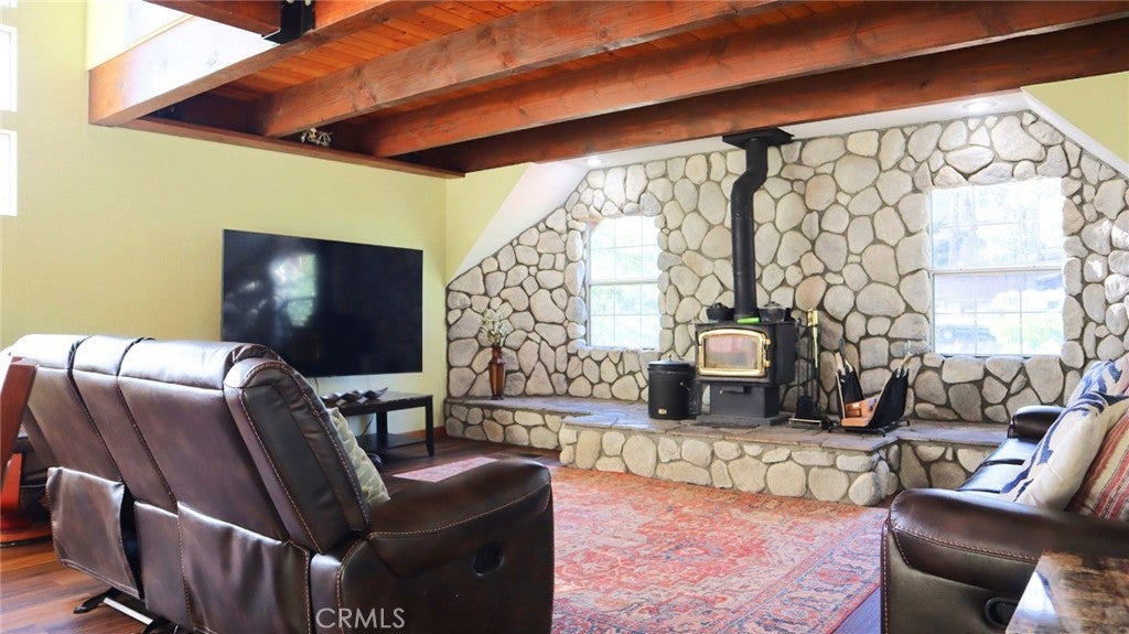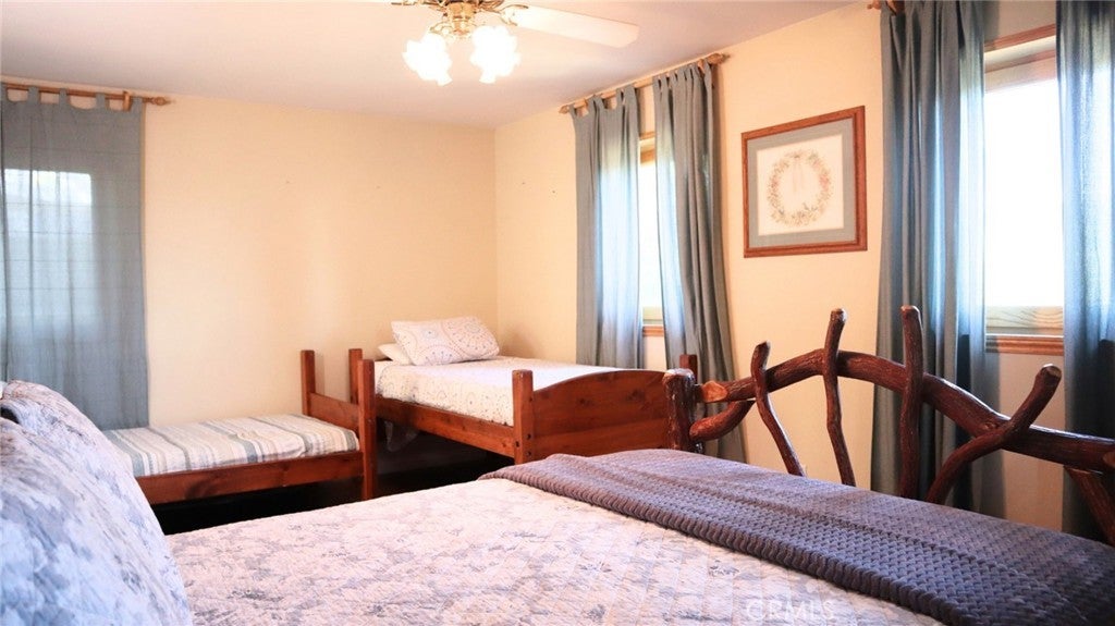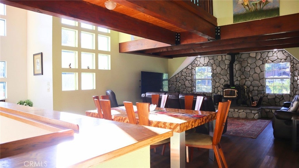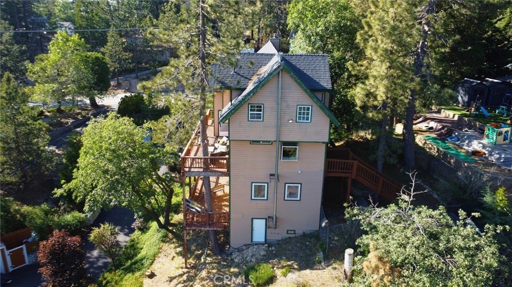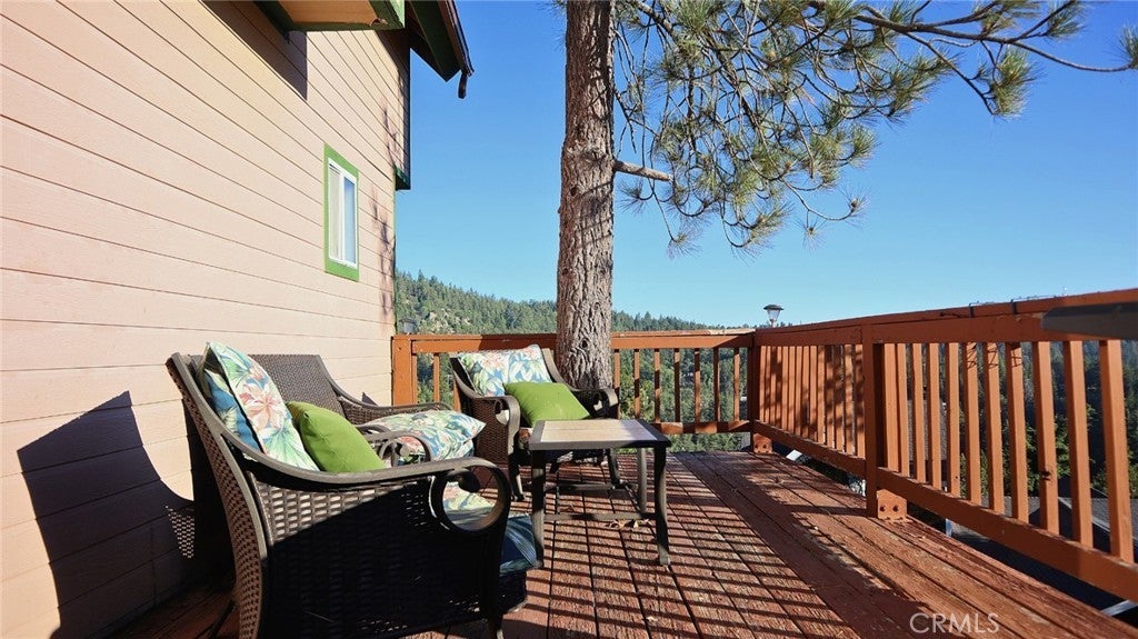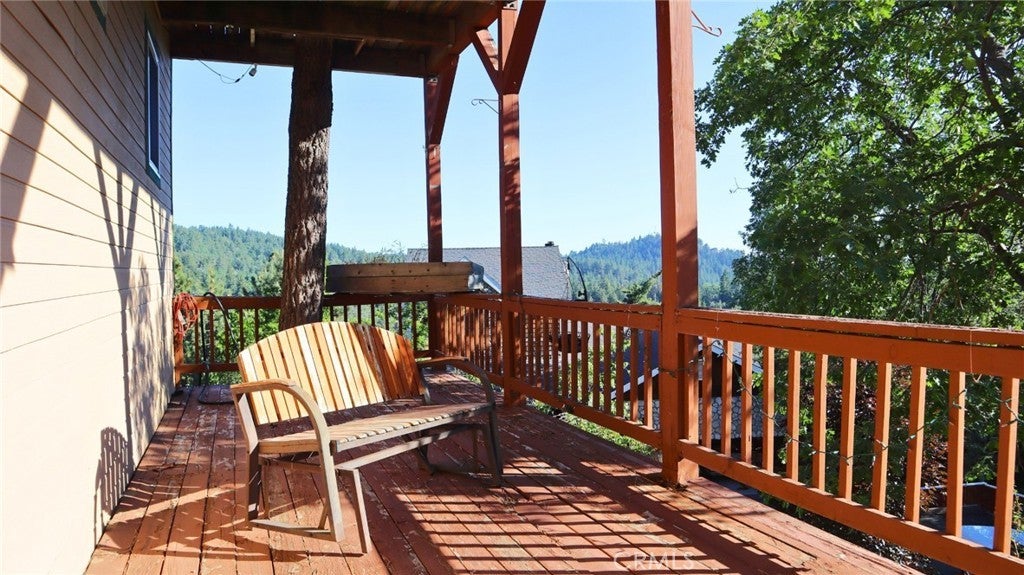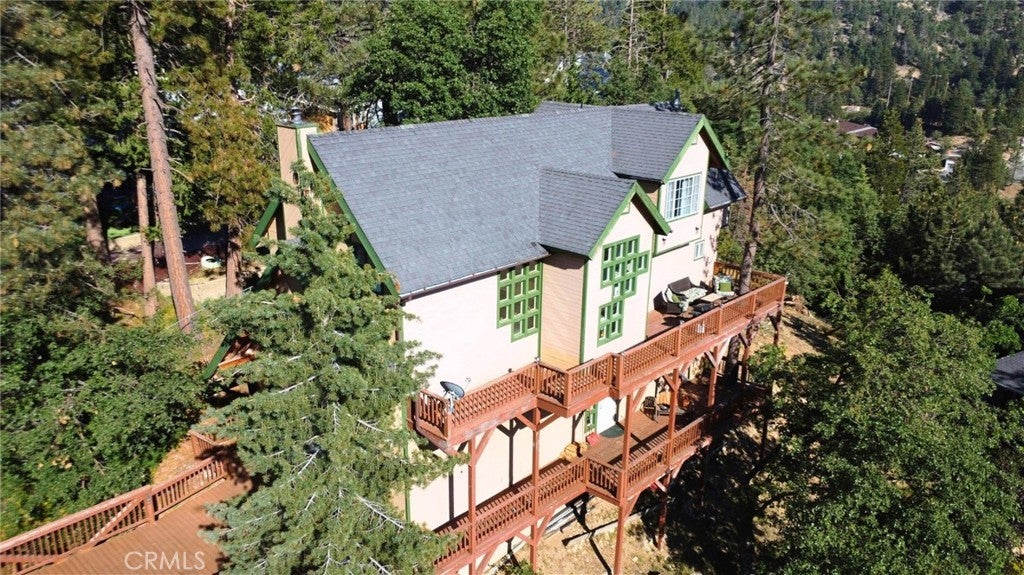 Discover your perfect mountain getaway in this beautifully updated cabin nestled in the serene community of Running Springs. This 3-bedroom, 3-bath home offers a rare combination of cozy charm and modern comfort, all set against the stunning backdrop of the San Bernardino Mountains. Step inside to find a living area with soaring high ceilings, rich wood accents, and a welcoming fireplace—ideal for family gatherings. Windows with natural light and frame sweeping views of the forested landscape. The kitchen features close proximity to main dining room perfect for preparing meals to enjoy on your spacious deck overlooking the trees. The primary suite is close to the main level and two additional bedrooms in the upper level with scenic views and allowing perfect space for guests, home office, or a growing family. Outside, enjoy crisp mountain air, plenty of flat yard space, and a quiet neighborhood with easy year-round access. Located just minutes from Snow Valley Ski Resort, hiking trails, and the charming town center, this home is perfect for full-time living, a weekend escape, or a short-term rental investment. Turnkey condition with expansive deck for entertaining or relaxing and blended with a peaceful mountain views. It has convenient access to Highway 330 & local amenities. Don't miss your chance to own a slice of mountain paradise with one of the largest living and lot sq ft in the surrounding 1 mile area available in the market. Don't miss this gem, schedule your private showing today.