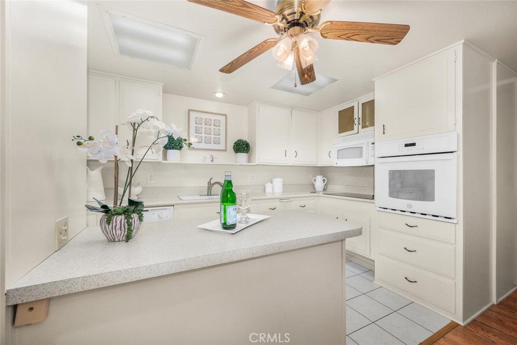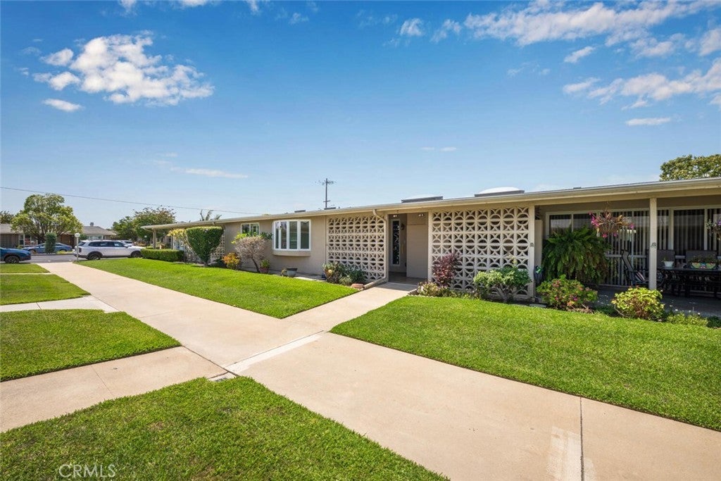 Mutual 12-68E ~ This beautifully expanded 2 bedroom 1 bath home is a must see! ~ As you come up to the entry you will see a quaint small covered patio. A great place to sit out and get some fresh air!! There is an added special feature = double french glass doors that open onto the patio, and beautiful stained wood entry door with decorative glass. Upgrades include a gorgeous "bow" window in the expanded front room, bringing in extra light in to this custom space. A large skylight just inside the entry makes the room light and bright. Ceiling fans in livingroom, bedrooms and kitchen keep the home cool in the summer. Flooring is faux-wood laminate in the livingroom, carpet in both bedrooms, tile in kitchen and bathroom. Laminate countertop in the kitchen, including a usable peninsula for eating and food prep, an over-the-stove built in microwave, dishwasher, refrigerator, wall oven, and glass stovetop. Also built-in to the kitchen countertop is a Nu Tone blender/mixer. The bathroom has white cabinetry, laminate countertop, and a cut-down shower with molded seat. The primary bedroom and second bedroom both have two different entries. The primary features a large walk-in closet with built in shelving. Nearby carport parking is located in building 66, space 29 .... Leisure World is a 55+ Senior community. Resort like, private guard gated with lots of community amenities, par 3 golf course, pickle-ball, bocce ball , a new pool and spa, state of the art gym, open-air amphitheater for live entertainment and big screen movies in the summer, 5 clubhouses with plenty of activities to keep you from getting bored. Located just 1.5 miles from the beach and Seal Beach Pier. Come and see your new home in fabulous Seal Beach Leisure World!