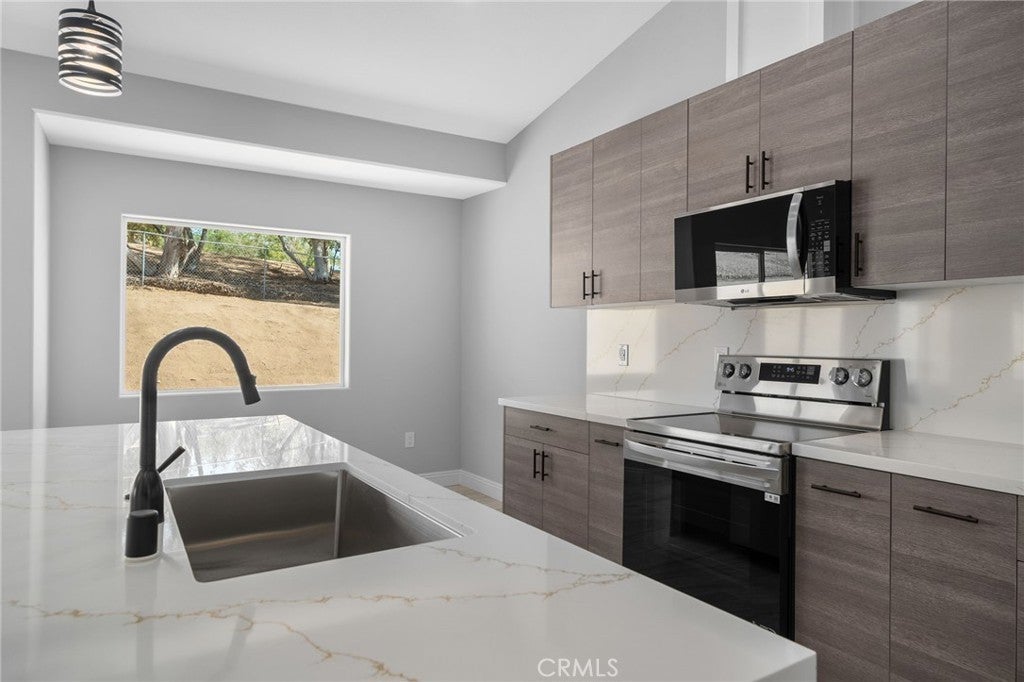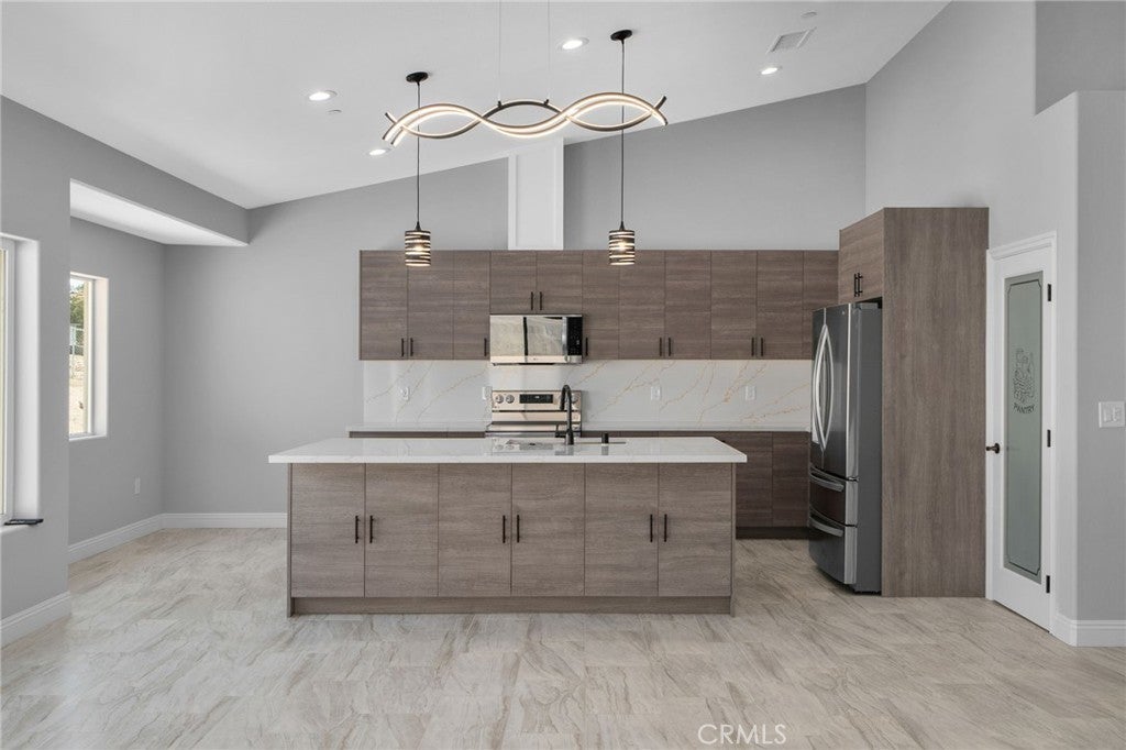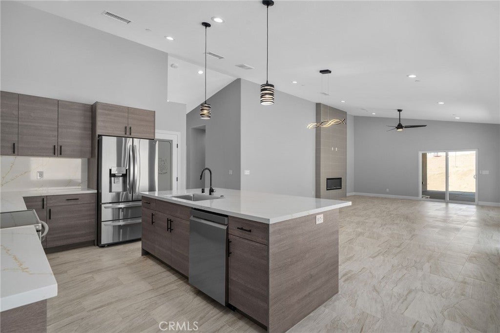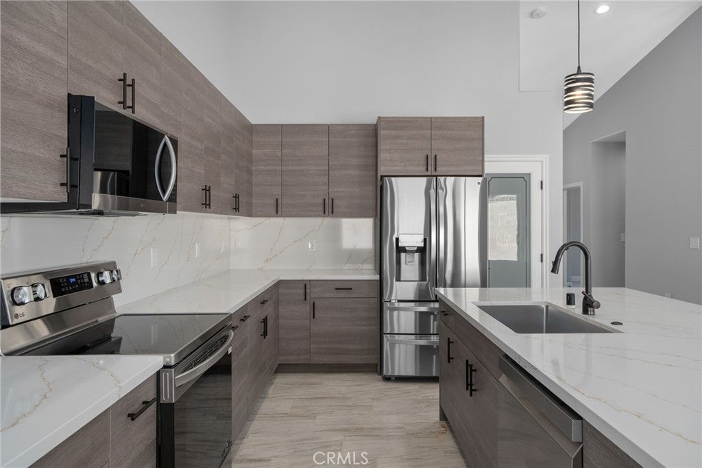BEAUTIFUL CUSTOM BRAND NEW HOME IN DESIRABLE HESPERIA. Property features: New construction with upgraded cabinetry, custom flooring, custom lighting fixtures, USB&C-type outlets at kitchen and Master bedroom, Cat-6 throughout for TV in every bedroom and living areas, Cat-6 network through entire house, Camera Surveillance system already installed with 2TB recorder, Ring doorbell already installed, Smart home system, 3 Car garage doors insulated, Garage door openers operable via cell phone, Thankless Gas Water Heater, Natural Gas equipped home & electric 220V power appliances, Paid Solar Panel system included, RV parking area, clean-out available for RV, EV ready in garage with dedicated Braker, fully equipped kitchen appliances-Stove, microwave, dishwasher and Refrigerator.