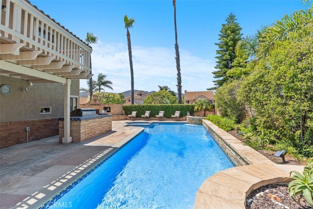 Looking for a 4-bedroom home? Welcome to 1200 Cerca in San Clemente’s Forster Ranch! While officially listed as a 3-bedroom, this beautiful residence offers a **versatile downstairs den** that could easily be converted into a 4th bedroom—with a full bathroom conveniently located just across the hall. Situated in the sought-after Veracruz tract on a large 8,000 sq. ft. corner lot in a quiet cul-de-sac, this 2,008 sq. ft. home features 3 full bathrooms and a long list of upgrades: 2017 new 50-gallon water heater, 50-year cement tile roof, and fumigation; a stunning 2021 primary bath remodel with custom tile, walk-in shower, clawfoot soaking tub, and chandelier; a 2022 Lennox HVAC system; and a 2024 new garage door and opener. The entertainer’s backyard is a private retreat featuring a custom saltwater pool & spa, outdoor fireplace, and built-in 48” DCS BBQ island—perfect for gatherings and summer nights. Inside, enjoy Arizona flagstone floors, a chef’s kitchen with granite countertops, Viking refrigerator, and 36” 6-burner range, plus inviting living and dining areas designed for comfort and entertaining. Additional highlights include travertine and tile secondary baths, wrought iron entry doors, custom stone and brickwork, mature landscaping with auto sprinklers and lighting, and gated RV parking (11’x44’ slab, buyer to verify). **California living at its best—don’t miss the property video and 3D interactive floorplan—this San Clemente gem truly has it all!