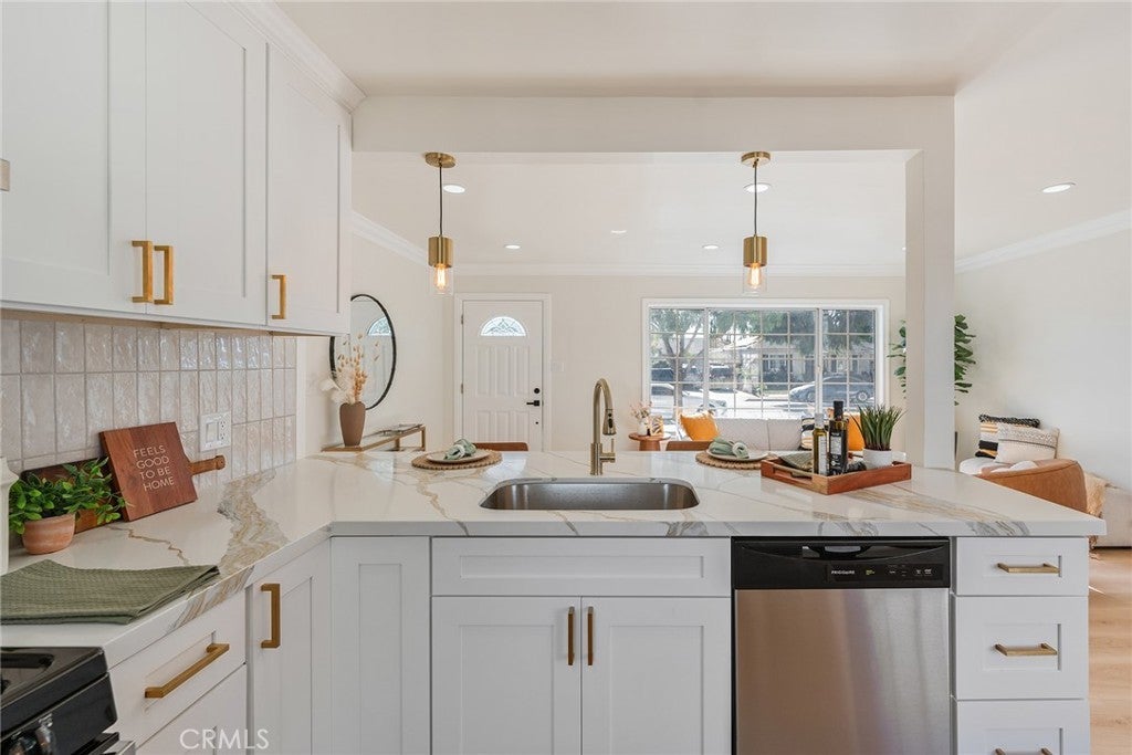 Come see this completely remodeled home done by one of the best contractors in OC area! This home was meticulously redone from top to bottom. No expense was spared on the transformation of this beautiful home. Many of the designer touches installed are highlighted by the natural light throughout the home. The vinyl flooring throughout the home is not only beautiful, but easy to maintain. The open kitchen has been completely redone with all new shaker cabinets, beautiful quartz counter tops, stunning tile backsplash and stainless steel appliances. Home is freshly painted from inside out, with endless upgrades throughout the entire home. The backyard features ample of space to create your dream backyard or even build an ADU! This home is perfect for a growing family looking to live in the heart of Orange County!