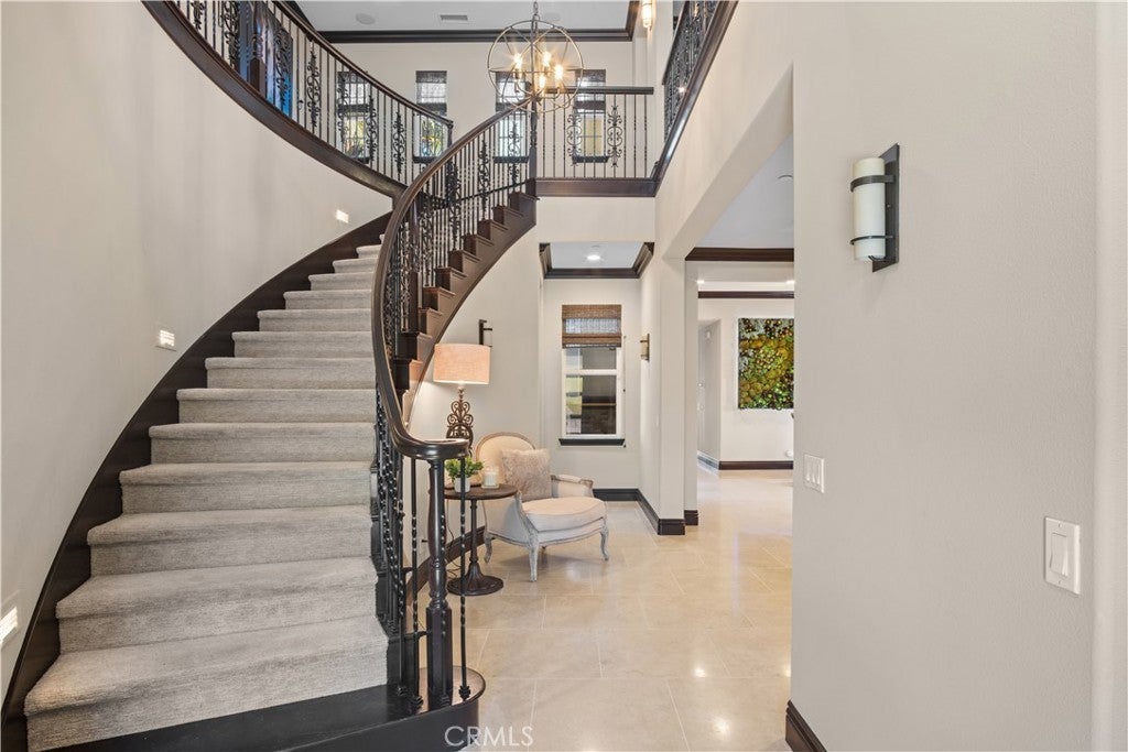 Welcome to 36 Via Divertirse, a stunning Mediterranean-style estate in Talega’s Mirador enclave. This 6-bed, 5.5-bath home spans 4,831 sq ft on a 9,862 sq ft lot, designed for luxury and functionality. Enjoy formal living and dining rooms, a guest suite, private office, and detached casita. The chef’s kitchen boasts Caesarstone counters, 6-burner Wolf range, dual ovens, warming drawer, breakfast nook, and walk-in pantry, opening to a spacious great room with fireplace. Upstairs features a luxurious primary suite with fireplace, balcony, spa-style bath, and 3 ensuite bedrooms plus loft, bonus room, and laundry. The backyard offers a large heated pool with waterfall and swim-up bar, spa, and a cabana with BBQ, fridge, sink, and keg tap. A fenced side yard serves as a dog run. Additional highlights: walnut floors, dual-zone HVAC, whole-house fan, 3-car garage. Steps from Talega Swim & Athletic Club, parks, shops, golf, and top-rated Capistrano schools.