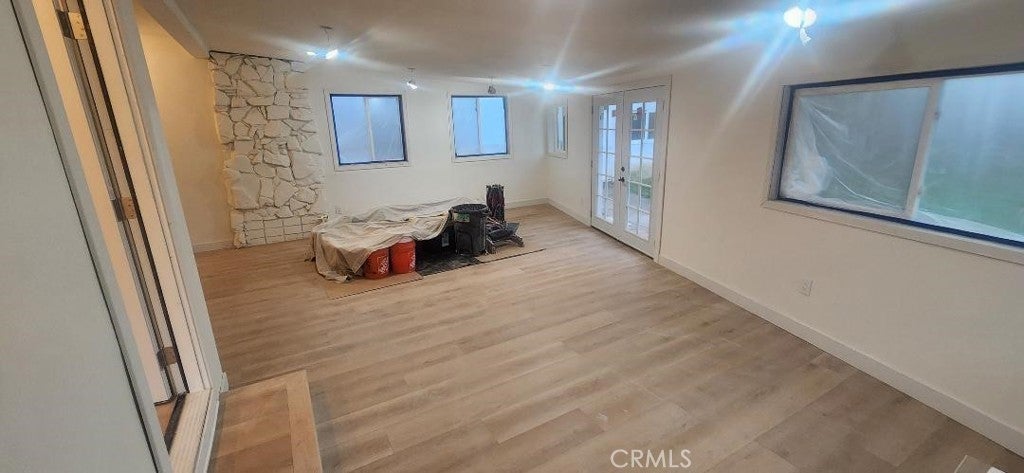 Garden Grove Remodeled Detached Single Level Home close to Disneyland . Going through remodel , large lot , new hardwood style vinyl plank flooring ( Shaw Cortec ) , two tone designer paint interior & exterior , open kitchen will have new stainless appliances ( slide in range oven stove , dishwasher , microwave , double door refrigerator ) / new white quartz counters / new white shaker cabinetry , bath has a new walk in tile shower , recessed lighting , vinyl windows and new french doors , new central ac & heat , new raised panel interior doors and moldings , detached double garage , close to Disneyland & Convention Center . Square footage does not include unpermitted rear addition that can be used as a sun room or bonus room , sun room size is aprx 430 to 520 sq ft / total sq ft with sunroom might be around 1600 sf , city has documents on the addition / see supplements