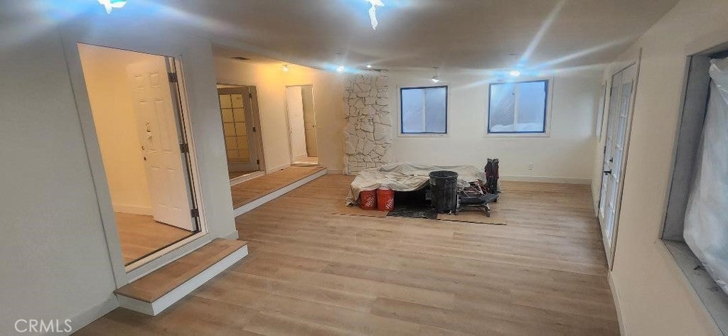 Garden Grove Remodeled Detached Single Level Home with Detached Double Garage . Going through remodel , large lot , new hardwood style vinyl plank flooring ( Shaw Cortec ) , two tone designer paint interior & exterior , open kitchen will have new stainless appliances ( 36 inch gas range oven stove , dishwasher , island exhaust fan , microwave , double door refrigerator ) / new white quartz counters / new white shaker cabinetry , bath has a new walk in tile shower , recessed lighting , vinyl windows and new french doors , new central ac & heat , new raised panel interior doors and moldings , close to Disneyland & Convention Center . Square footage does not include unpermitted rear addition that can be used as a sun room or bonus room , sun room size is aprx 430 to 520 sq ft , city has documents on the addition , ask agent for docs .